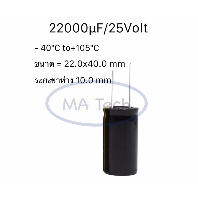 22000uF 25V Capacitor 22000uf25V คาปาซิเตอร์ 22000uf/25v ขนาด 22.0×40.0mm จำนวน 1 ชิ้น