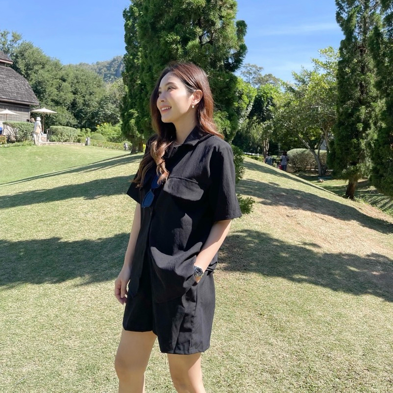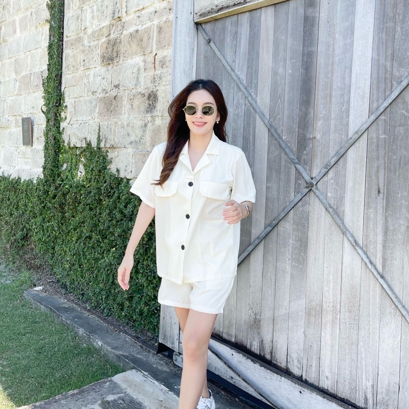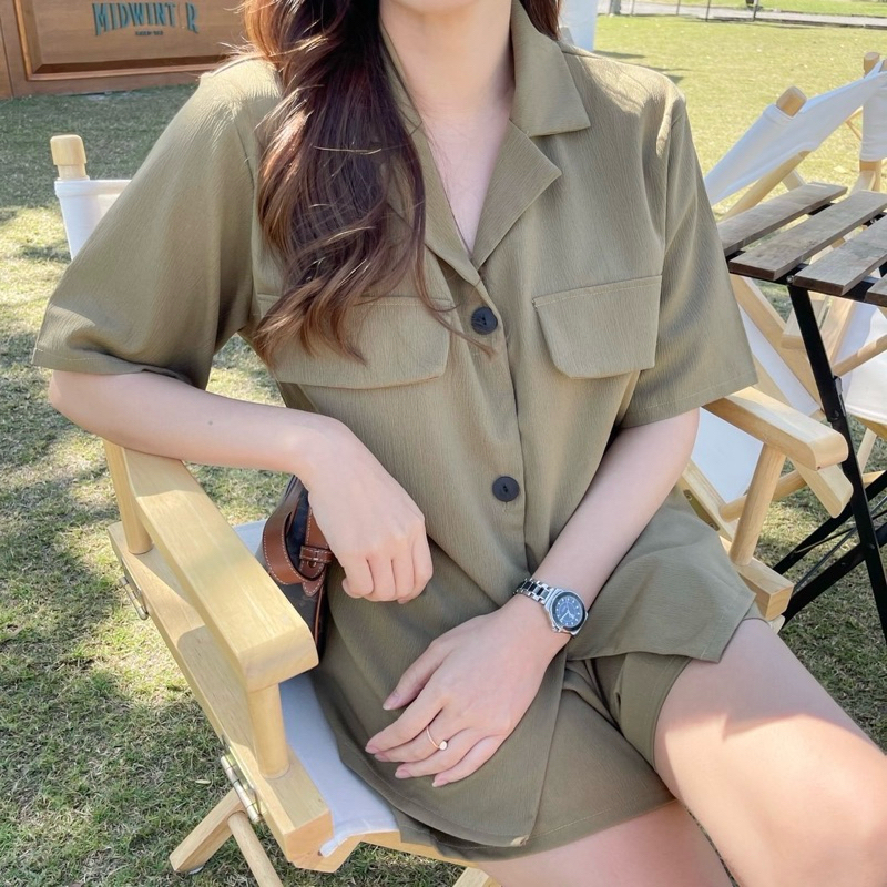 ชุดเซ็ทใส่ชิลๆ เสื้อเชิ้ตแขนสั้นกระดุมหน้า กระเป๋าแต่ง มาพร้อมกับกางเกงขาสั้นเอวยางยืดสม็อคหลัง กางเกงมีกระเป๋าทั้ง2ข้าง ผ้าลายเปลือกไม้ มีtexture ไม่ต้องรีด แพทเทิร์นเบสิค ใส่ได้บ่อย แมทช์แยกก็ได้ คุ้มค่าแน่นอนค่า