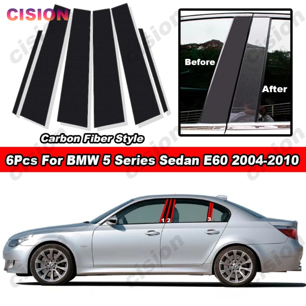 ฝาครอบเสาประตูหน้าต่างรถยนต์ PC สีดํามันวาว สําหรับ BMW 5 Series Sedan E60 2004 2005 2006 2007 2008 2009 2010 6 ชิ้น