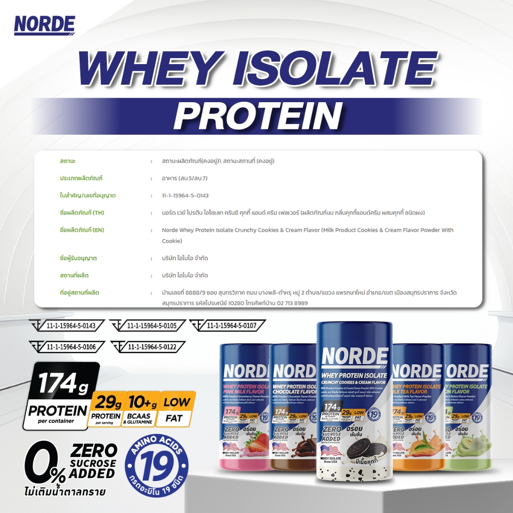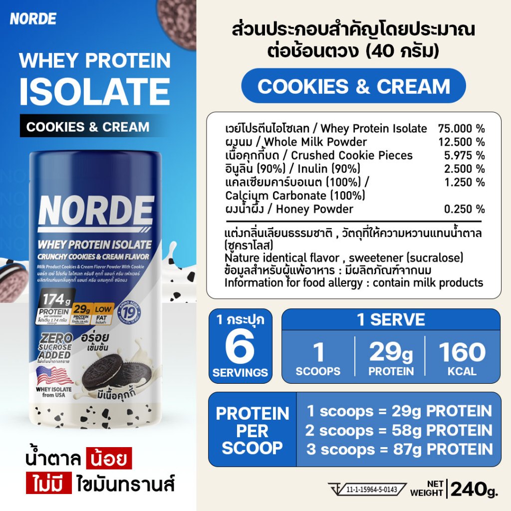 Norde Whey Protein Isolate นอร์ด เวย์โปรตีน ไอโซเลท 240g. No sugar added