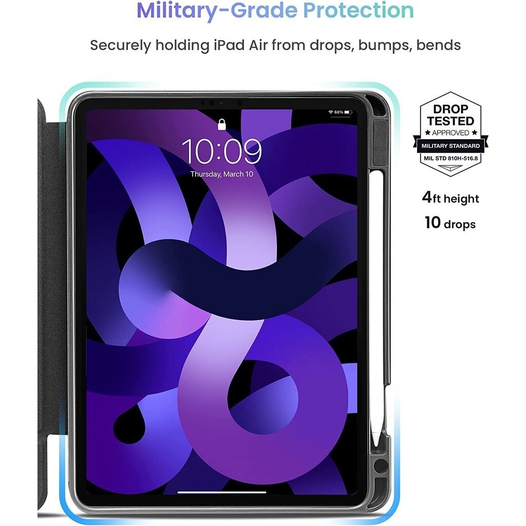 Tomtoc Inspire B50 เคสสำหรับ iPad Air 6 11″ และ iPad Air 5,4 10.9″ เคสที่สามารถปรับเปลี่ยนการใช้งานได้หลายหลาก ลักษณะเด่นจริงๆ คือการตั้งที่ได้ทั้งแนวนอนและแนวตั้ง เคสรองรับการตกระดับ Military Grade