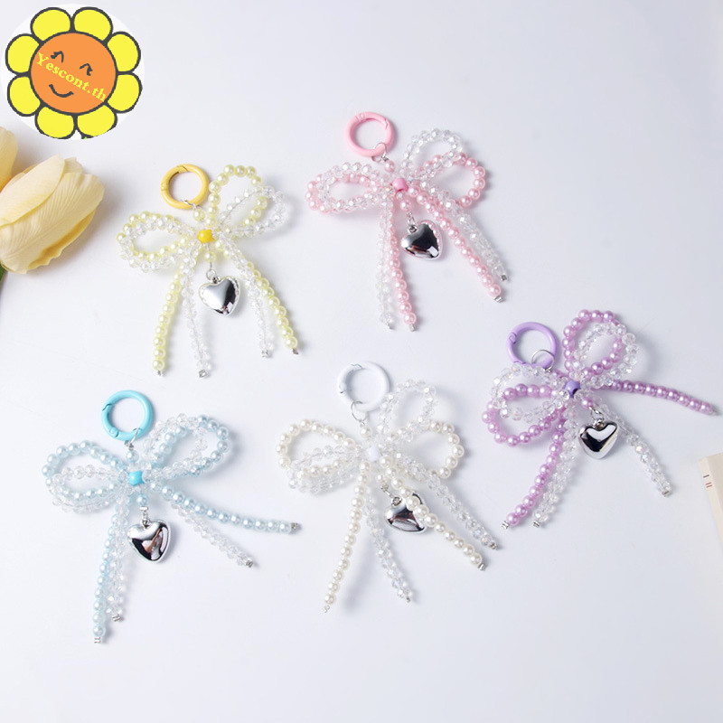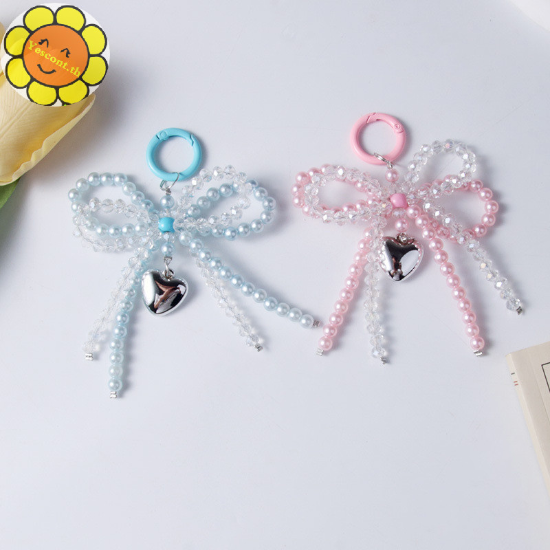 Yescont 1PC Handmade Pearl คริสตัลคู่โบว์รูปจี้พวงกุญแจเครื่องประดับที่ละเอียดอ่อนลูกปัดพวงกุญแจ DIY ตกแต่งสําหรับกระเป๋าโทรศัพท์ TH