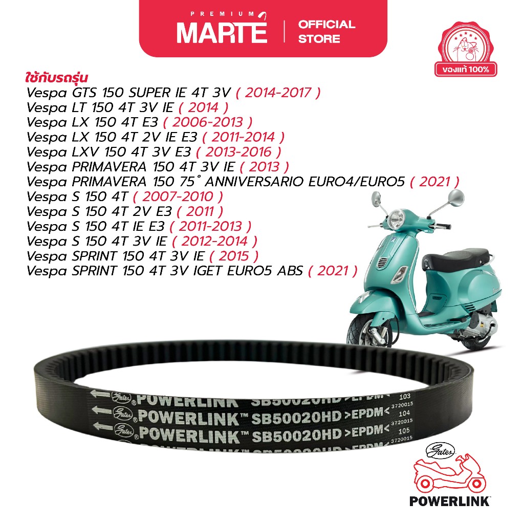 GATES POWERLINK สายพานรถจักรยานยนต์ PIAGGIO VESPA 150 ส่งฟรี ผ่อน0% รับประกันของแท้ มีประกัน
