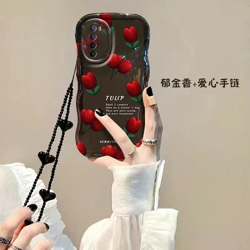 BLD| เคส สำหรับ Infinix Hot 8 9 10 11 12 Play 10S 11S NFC 12i 20 20S 40i Smart 4 5 6 Plus 7 8 Pro Tecno Spark 20 20C POP 8 GO 2024 เคสเชือกขอบหยักดอกทิวลิปสีแดงสีดำแบบมันวาวแบบนิ่ม