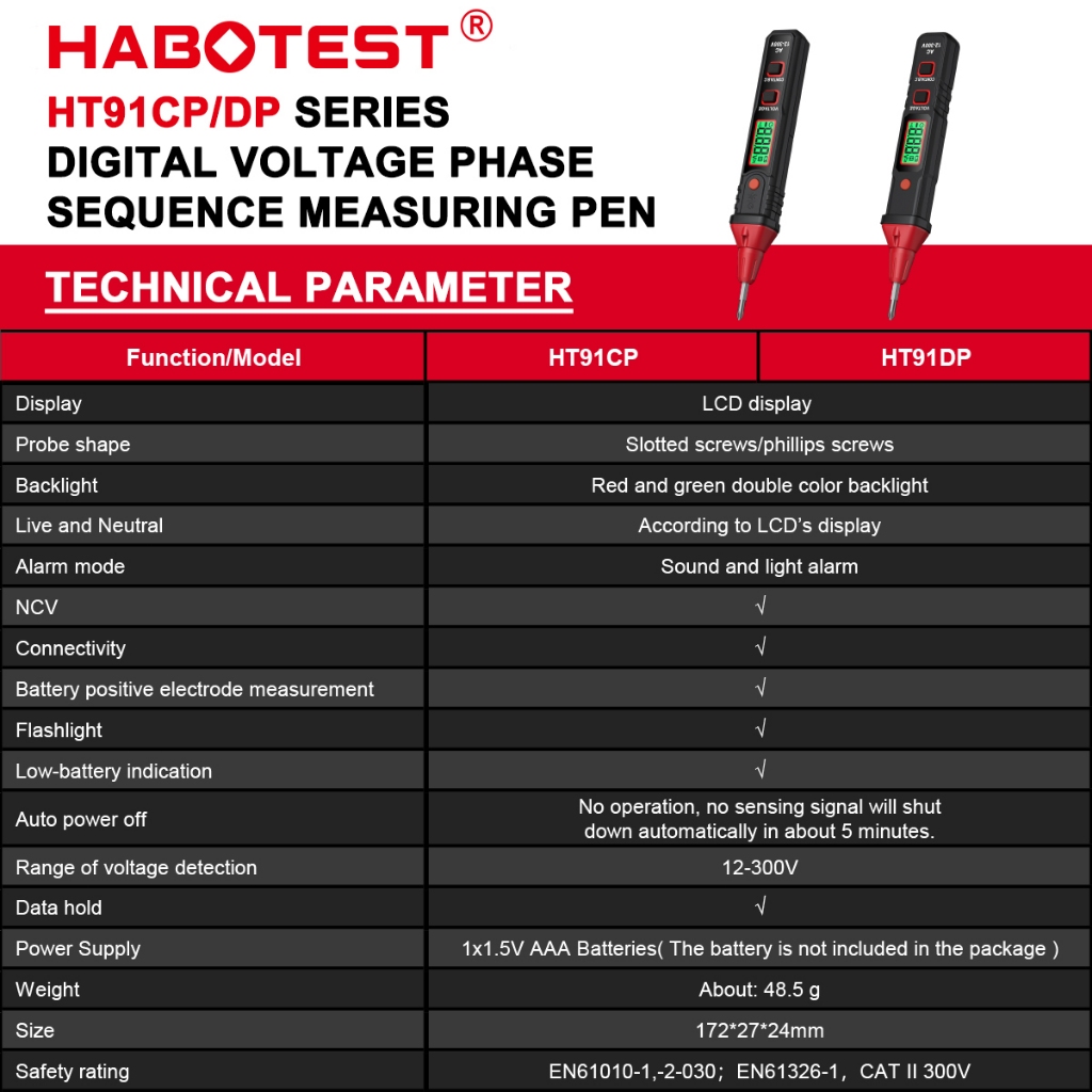 Habotest HT91CP/DP NCV เฟสปากกาทดสอบแรงดันไฟฟ้า AC เครื่องตรวจจับแรงดันไฟฟ้าแบนหัวไขควงมัลติมิเตอร์ประเภท Zero Fire Line เครื่องตรวจจับปากกามัลติฟังก์ชั่นปากกาทดสอบพร้อมหัวไขควง