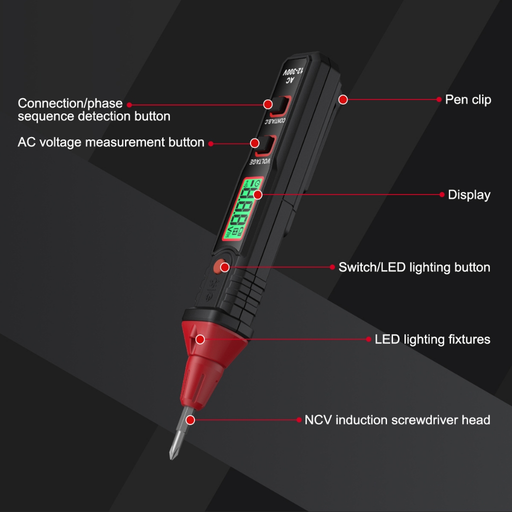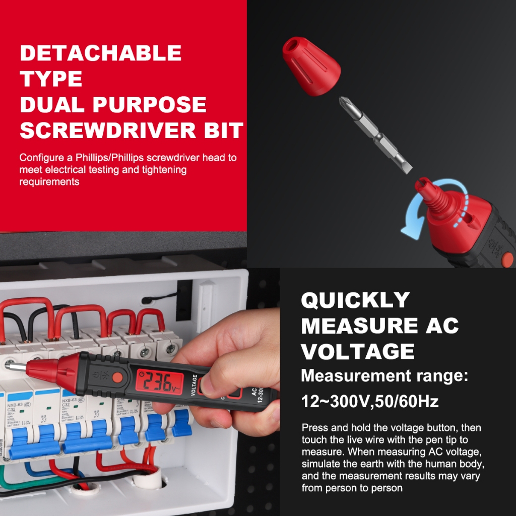 Habotest HT91CP / DP Series ลำดับแรงดันไฟฟ้าดิจิตอลปากกาวัดแบบไม่สัมผัสการตรวจจับแรงดันไฟฟ้า AC แบบถอดได้ไขควงอเนกประสงค์บิตเครื่องมือไฟฟ้า