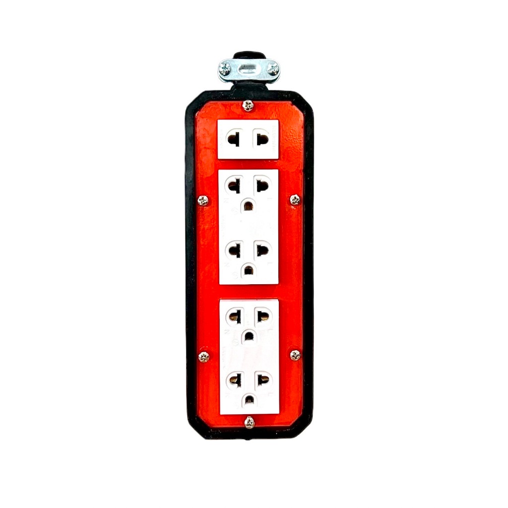 บล็อคยางพาราแท้ JPS 5 ช่องเสียบ / ปลั๊กกราวน์คู่ 2ตัว / ปลั๊กเมจิก 1ตัว 2×8-M