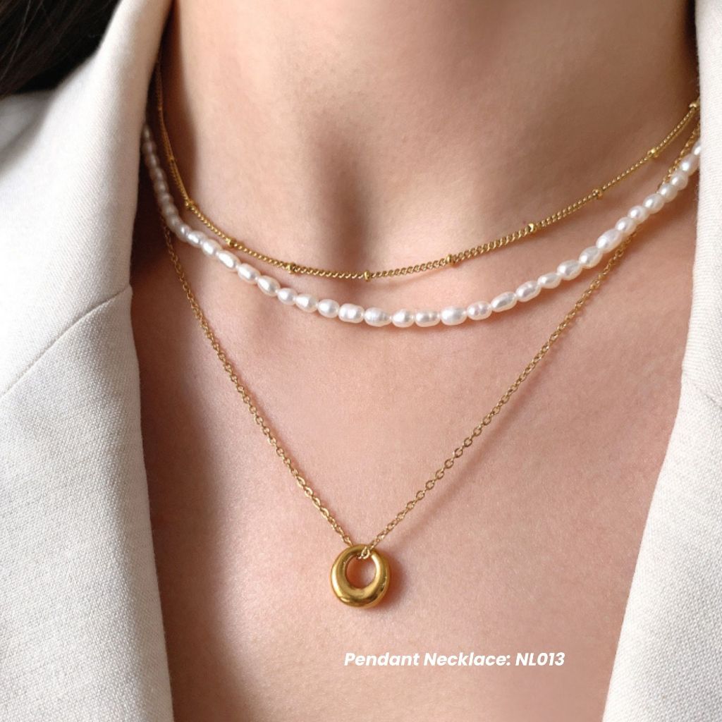 โซ่ลูกปัดมุกน้ําจืดสร้อยคอ 2 ชั้น 2ใน1 ชุด • เครื่องประดับกันน้ําเหล็กไทเทเนียมสแตนเลสสําหรับผู้หญิง ไม่มี012