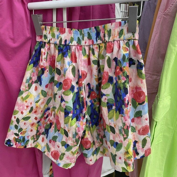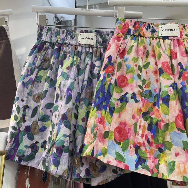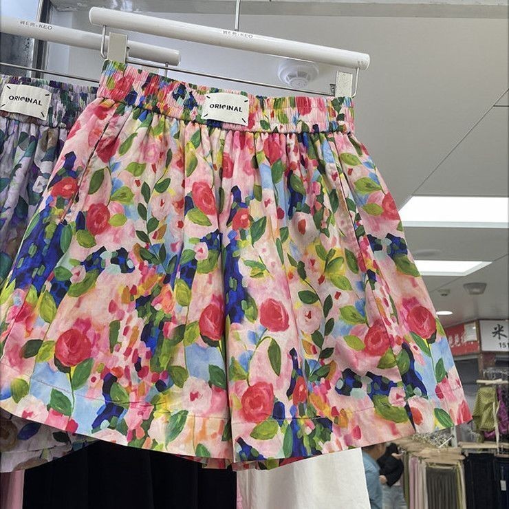 หยิบใส่ตะกร้า2024 หลวมที่มีสีสันดอกไม้กางเกงขาสั้นผู้หญิงรุ่นเอวสูงสบายๆอเนกประสงค์กางเกงขากว้างผู้หญิง2024宽松彩色碎花休闲裤女版高短裤女百搭女♣5.16