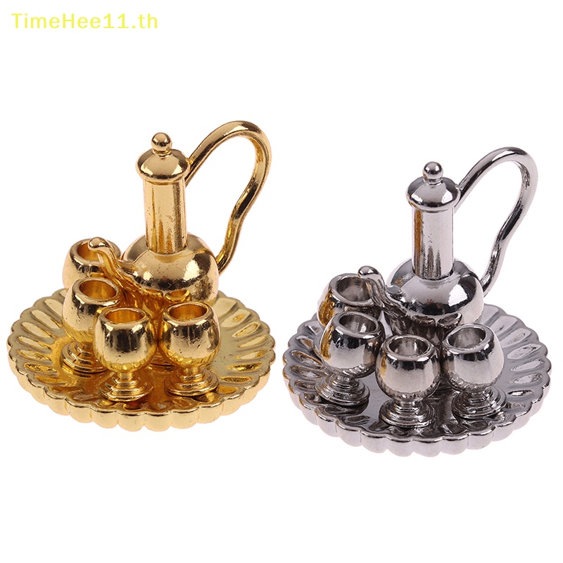 Timehee ชุดกาน้ําชาโลหะจิ๋ว 1:12 สําหรับบ้านตุ๊กตา TH