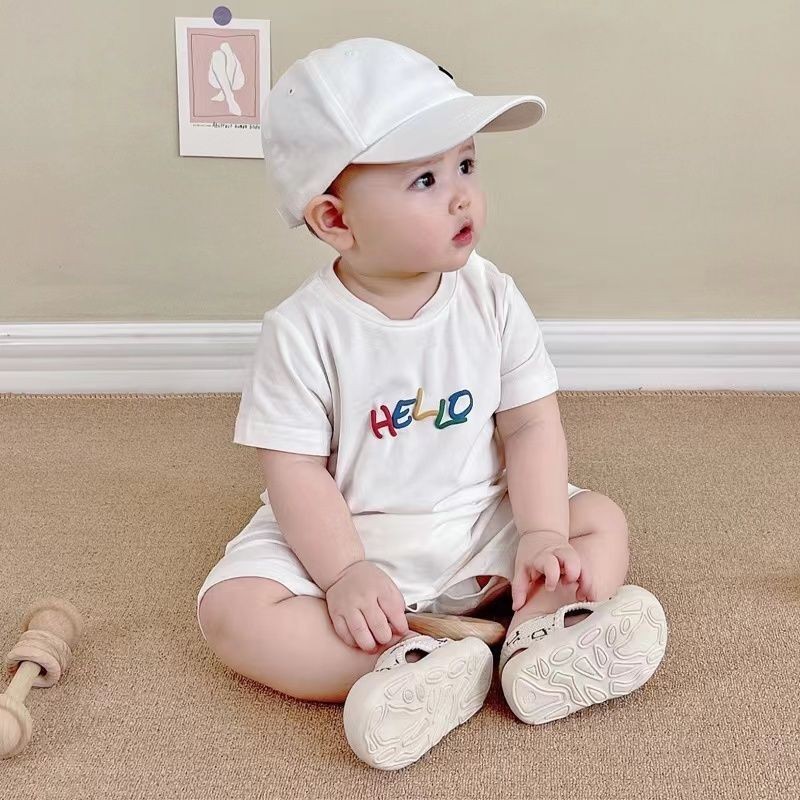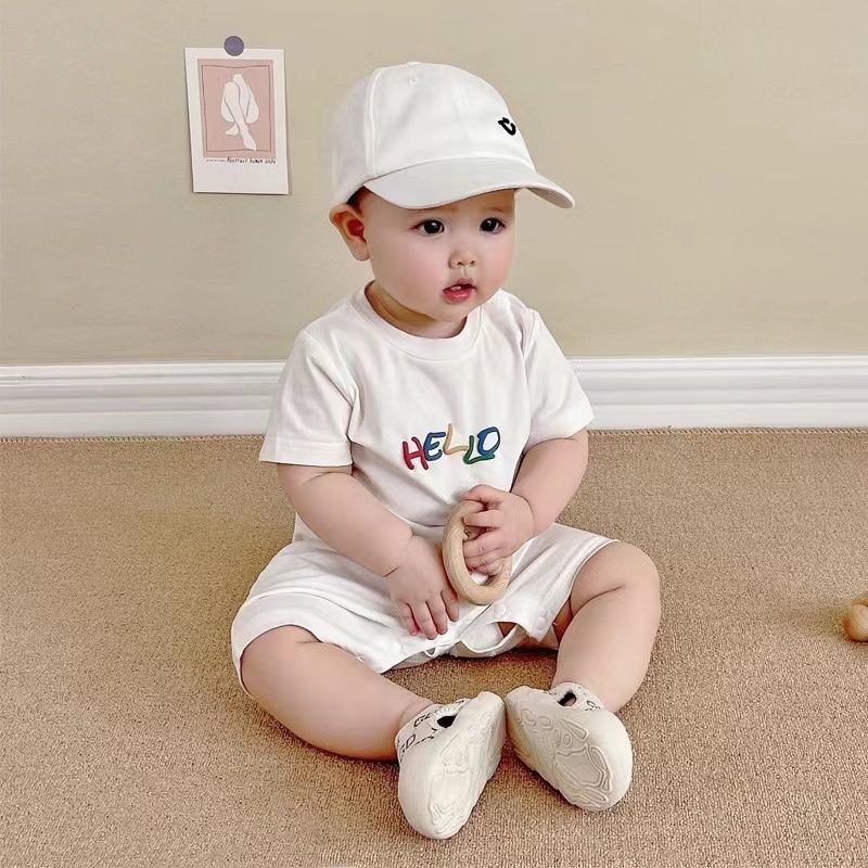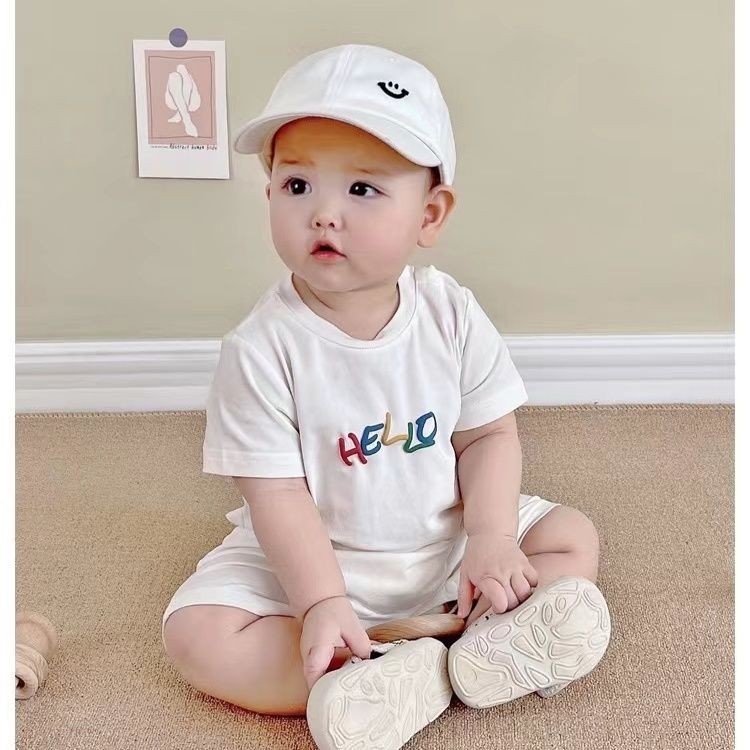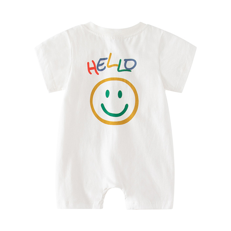 ชุดรอมเปอร์ บอดี้สูท แขนสั้น ผ้าฝ้าย ลายการ์ตูนหน้ายิ้มน่ารัก สไตล์เกาหลี เหมาะกับฤดูร้อน สําหรับเด็กผู้ชาย และเด็กผู้หญิง อายุ 0-24 เดือน