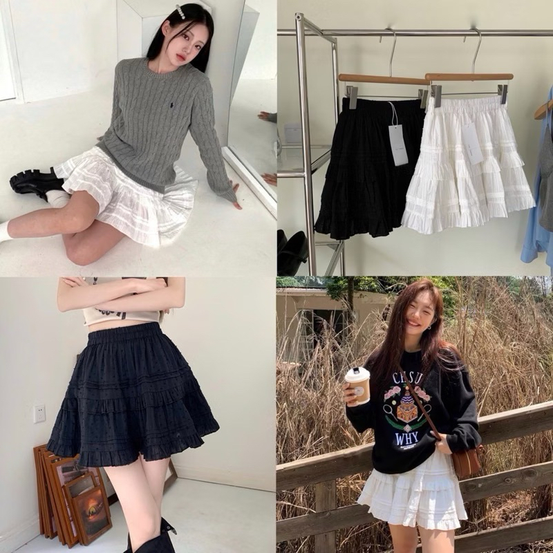 พร้อมส่งในไทย กระโปรงบาน กระโปรงระบายชั้นๆมี2สี สีดำและสีขาว มือ1 ❌พร้อมส่ง❌