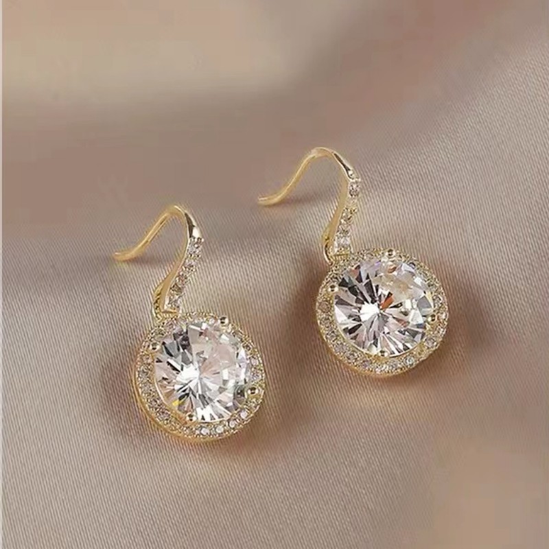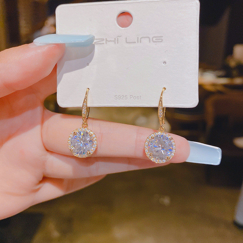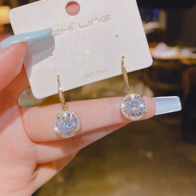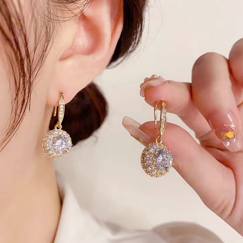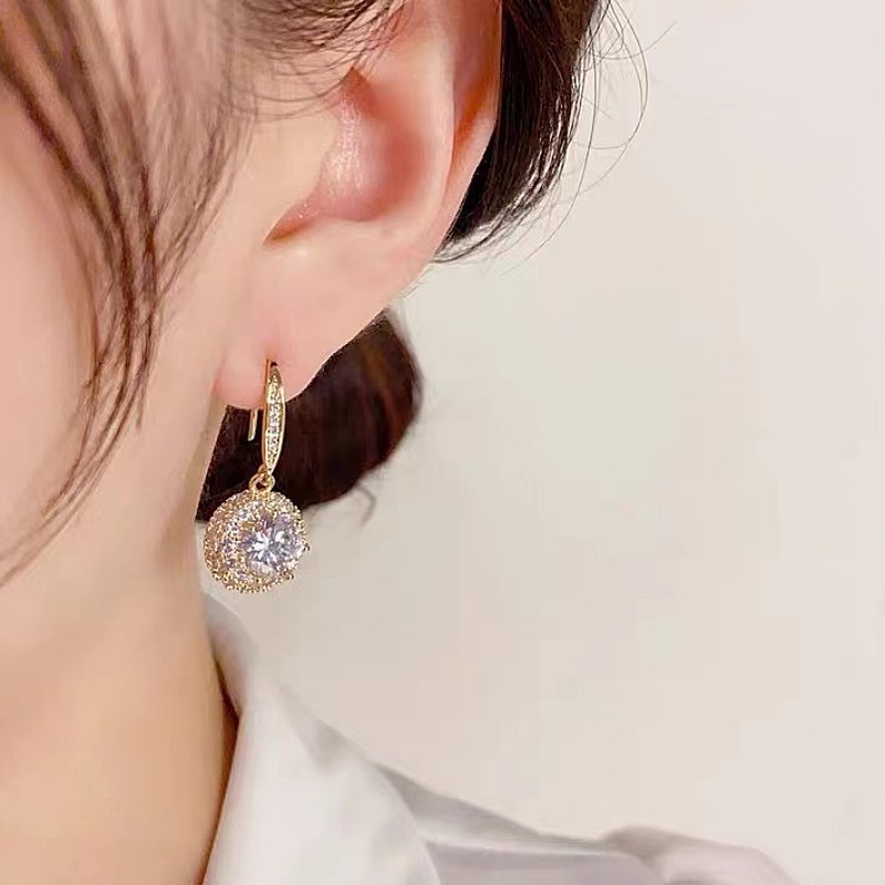 ต่างหูฝังไมโครทองแดงเพทายผู้หญิงอารมณ์ต่างหูแฟชั่นคนดัง