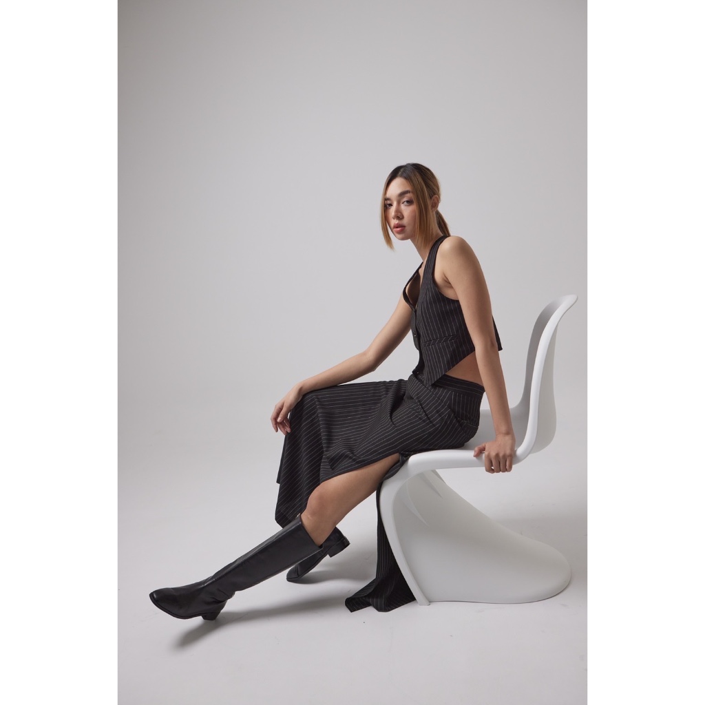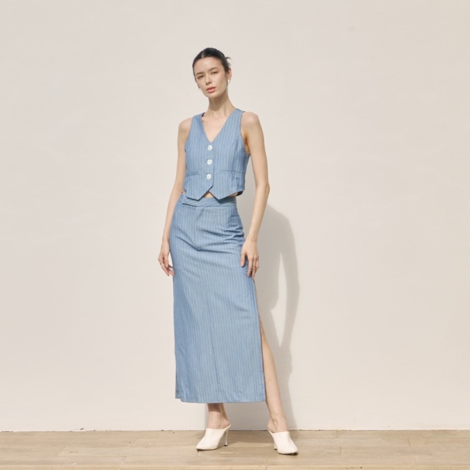 กระโปรงทรงดินสอ ผ่าข้างโชว์ขาเล็กน้อยเพิ่มความเปรี้ยว ไม่โป๊ ใส่แล้วไม่ตัน พรางสะโพก
