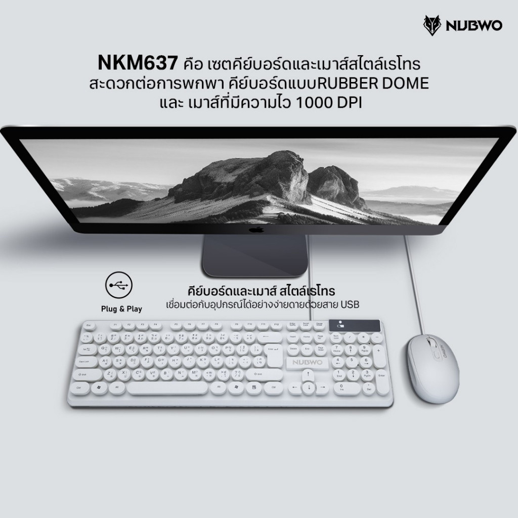 🎮 GAMING NUBWO NKM-637 Keyboard + Mouse USB COMBO คีย์บอร์ดและเมาส์ เชื่อมต่อง่าย ปุ่มกลมลอยดีไซน์มินิมอล แป้นพิมพ์
