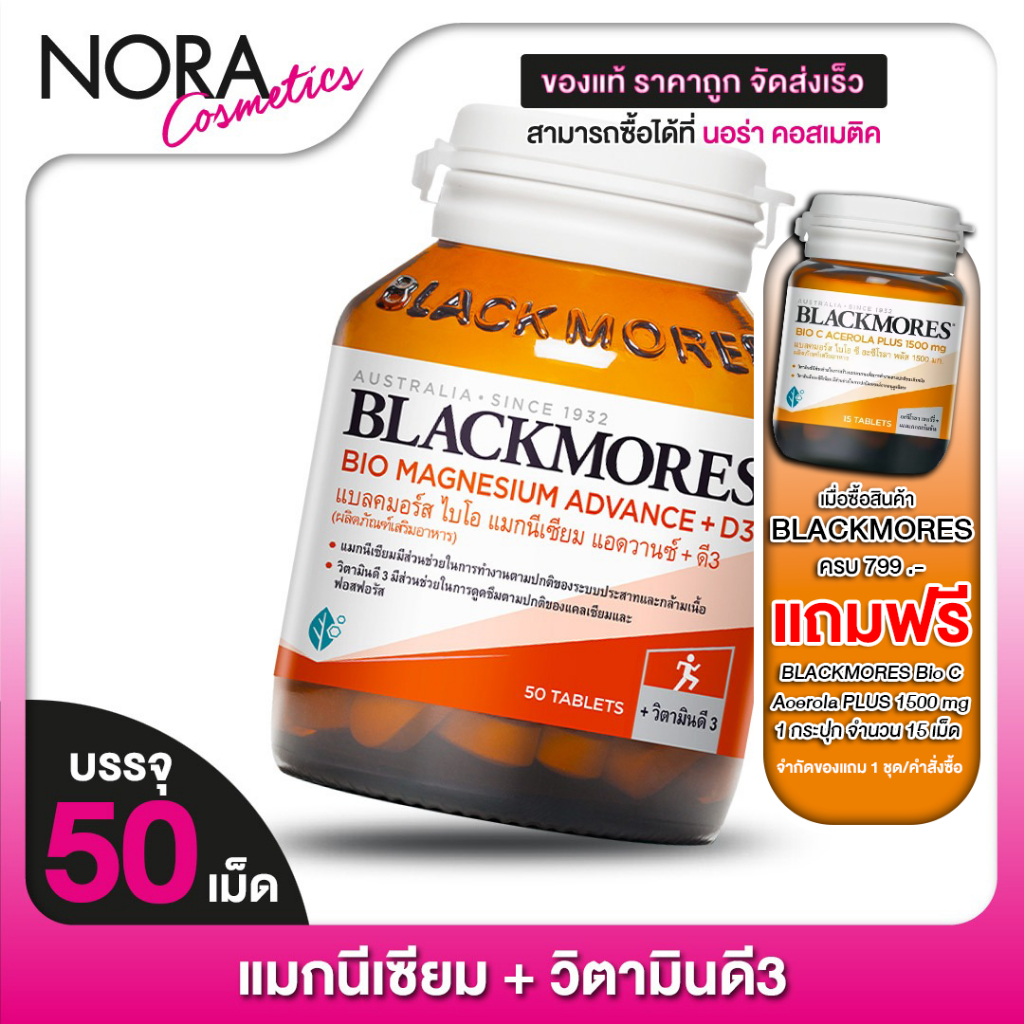 Blackmores Bio Magnesium Advance+D3 แบลคมอร์ส ไบโอ แมกนีเซียม แอดวานซ์+ดี3 [50 เม็ด]