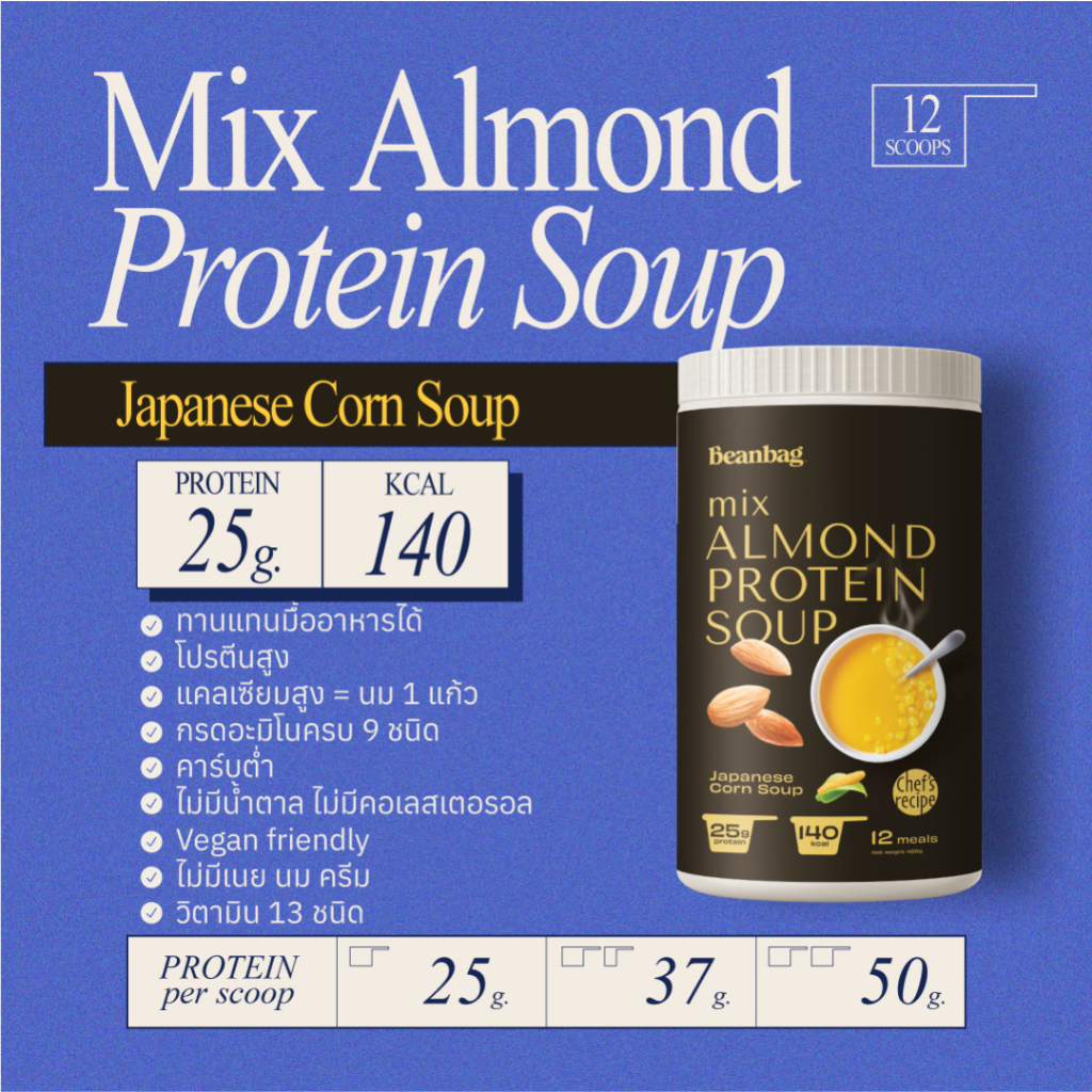 Bundle Set Mix Almond Protein Soup Japannese Corn 420g and Almond Protein Soup Truffle 420g รวม 2 กระปุก เลือกรสชาติได้