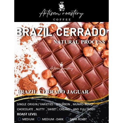 Artisan Coffee Roastery เมล็ดกาแฟคั่ว BRAZIL CERRADO Jaguar Pulped Natural process ออกโทน Nutty Chocolate แบบละมุ่น