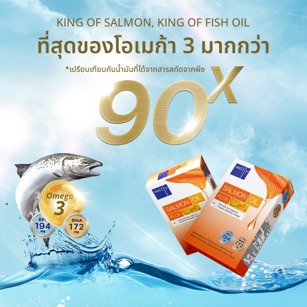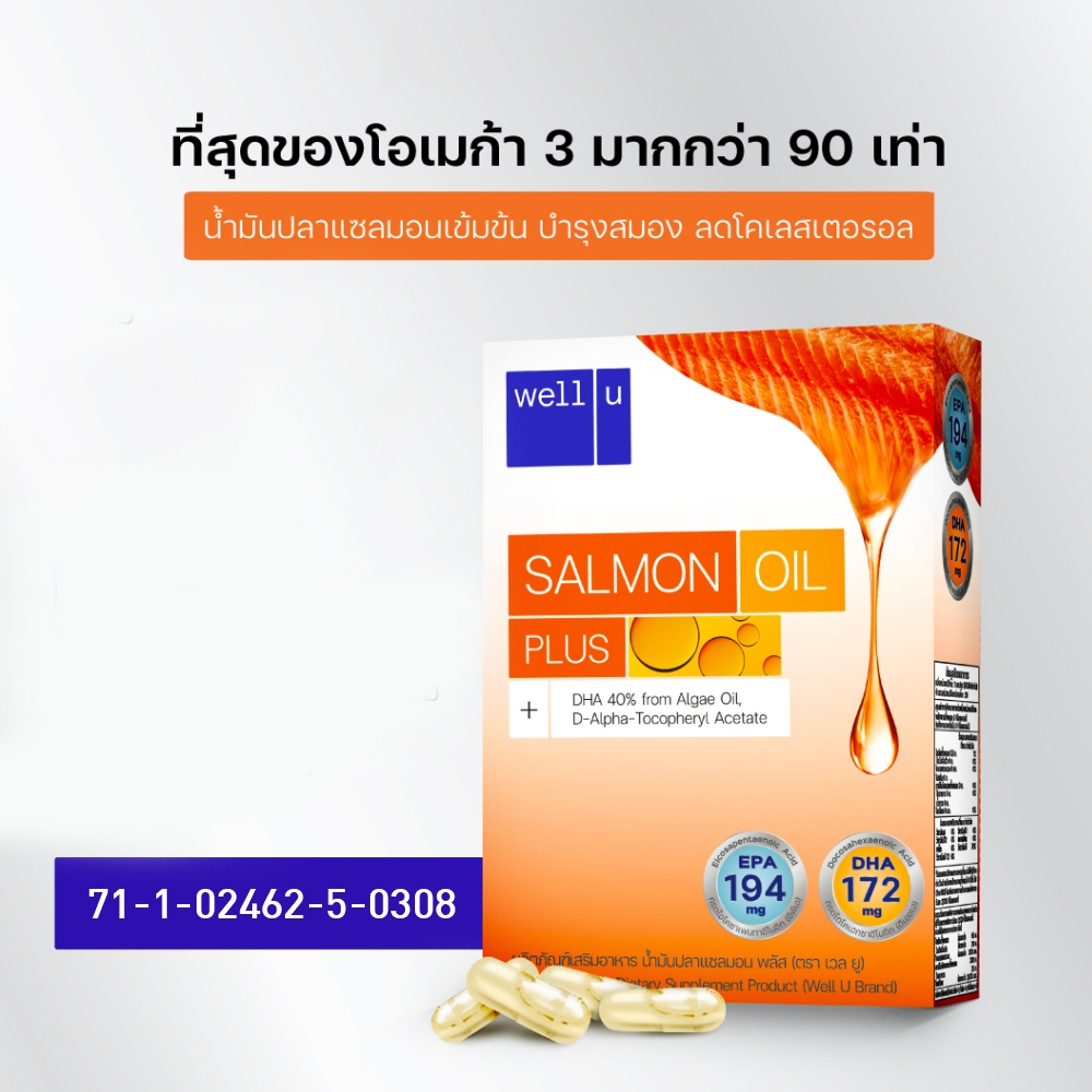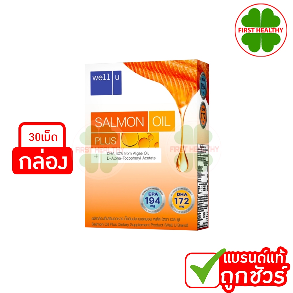Well u Salmon Oil Plus น้ำมันปลาแซลมอนเข้มข้น (1 กล่อง 30 แคปซูล)