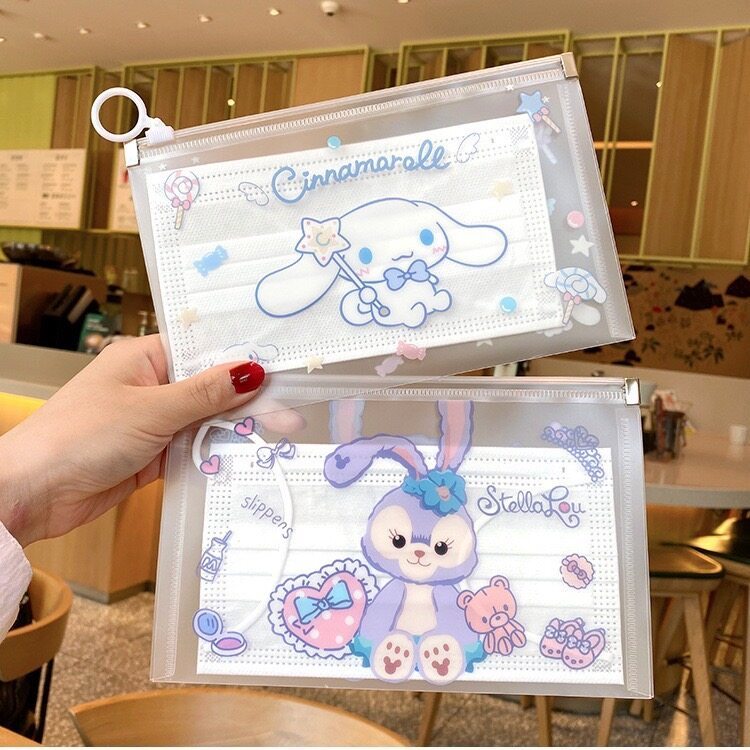 1ชิ้น ซองใส่ดินสอ ใส่แมส มีซิปล็อค กันน้ำ ลายการ์ตูนน่ารักๆ จุของได้เยอะ