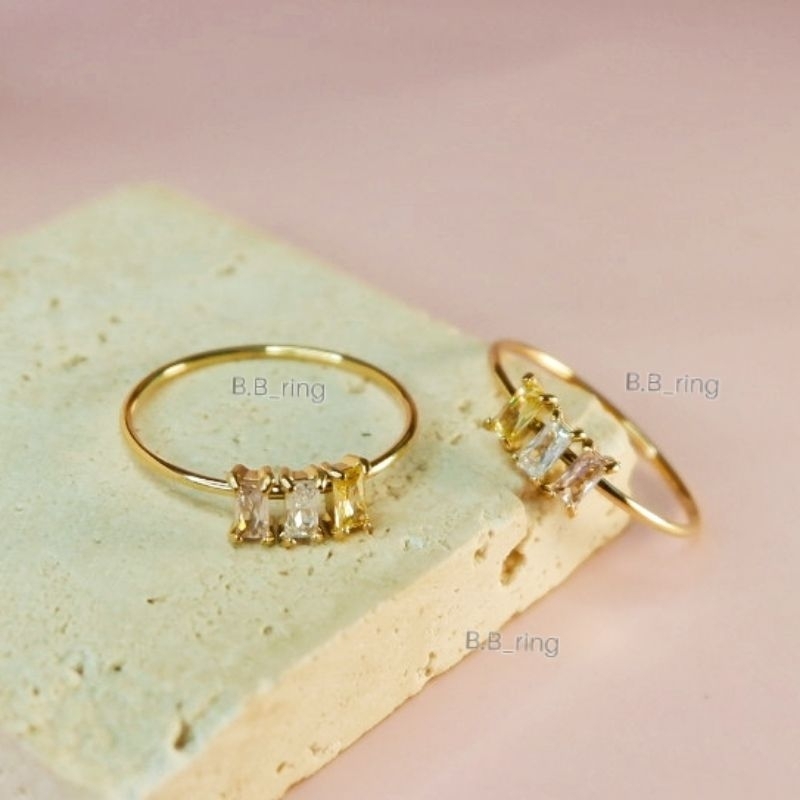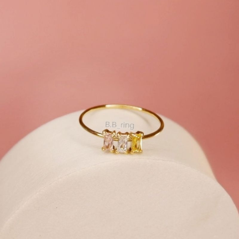 BBแหวนสแตนเลสคริสตัล3สีโทนสีพาสเทล
