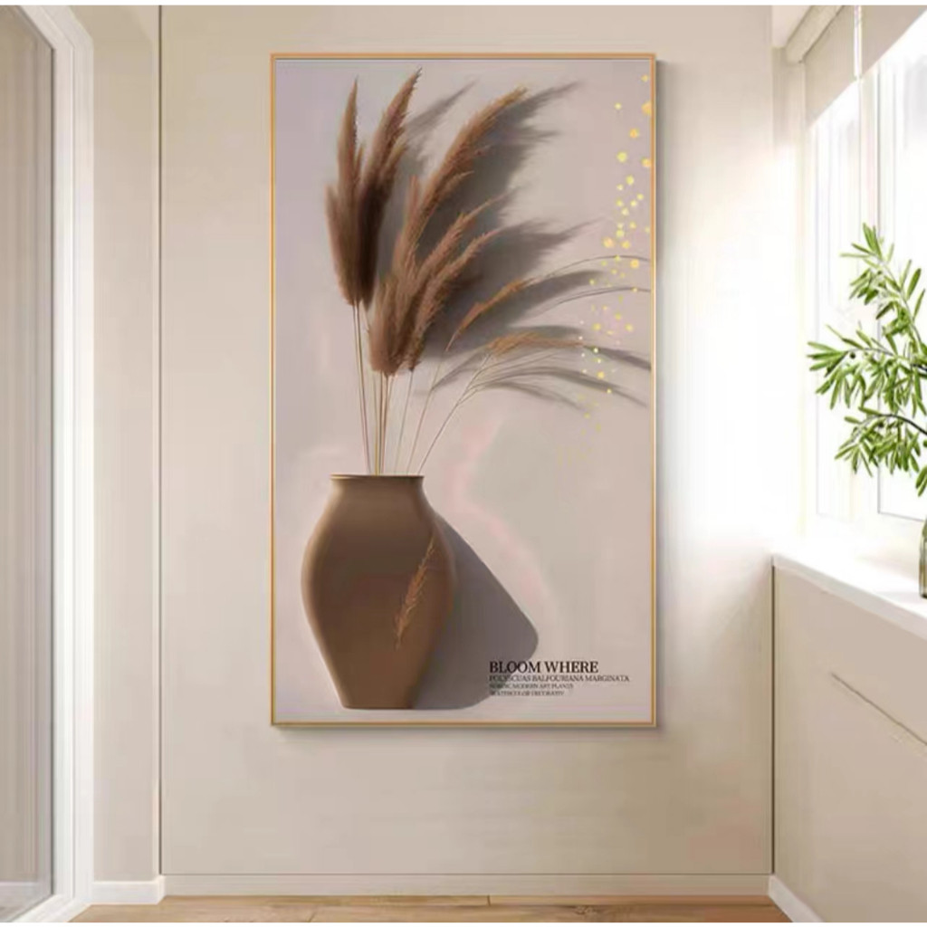ภาพวาดตกแต่งห้องนั่งเล่น ต้นไม้และดอกไม้ กรอบรูปพื้นหลังโซฟา กรอบรูปทางเดิน จัดส่งจาก กทม
