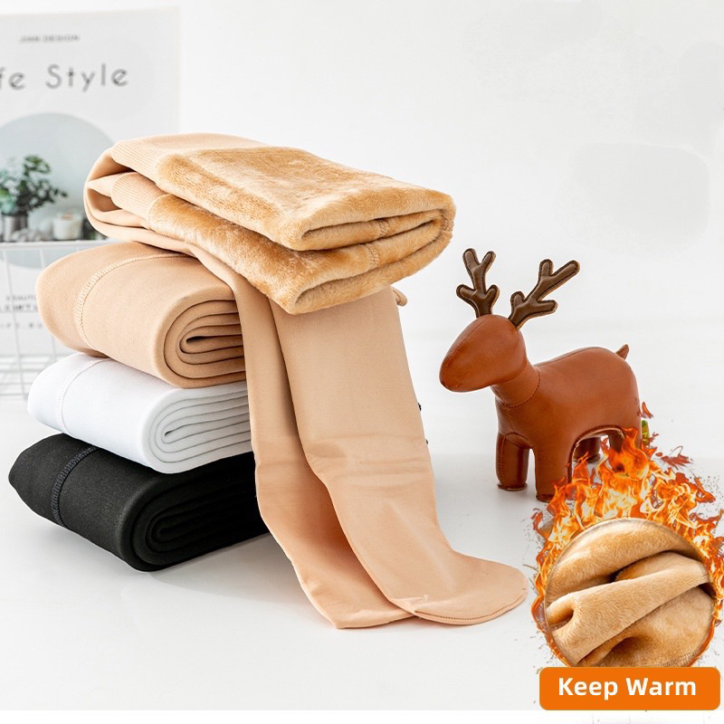 🇹🇭 เลคกิ้งกันหนาวบุขนเด็ก(หนา) คลุมเท้า และ รัดส้น ( ดำ เนื้อ ขาว)