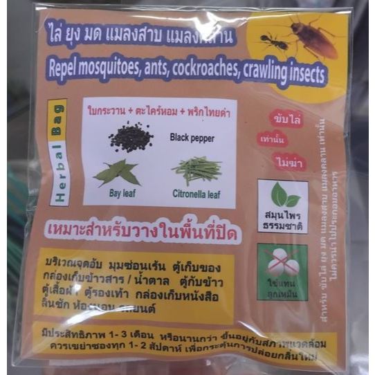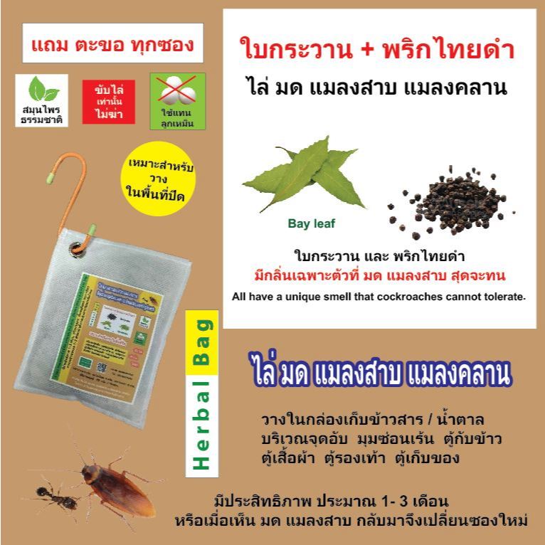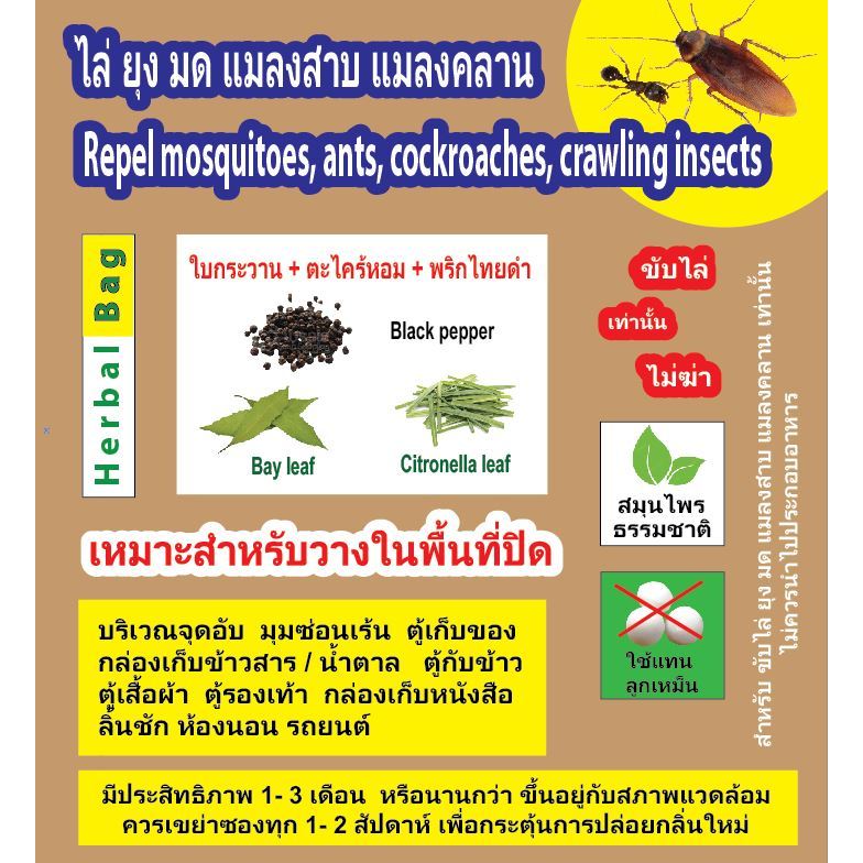 สมุนไพรธรรมชาติ ใบกระวาน ตะไคร้หอม พริกไทยดำ ไล่ มด แมลงสาบ แมลงคลาน ไม่ฆ่า ไม่บาป ใช้งานง่าย ไร้สารเคมี