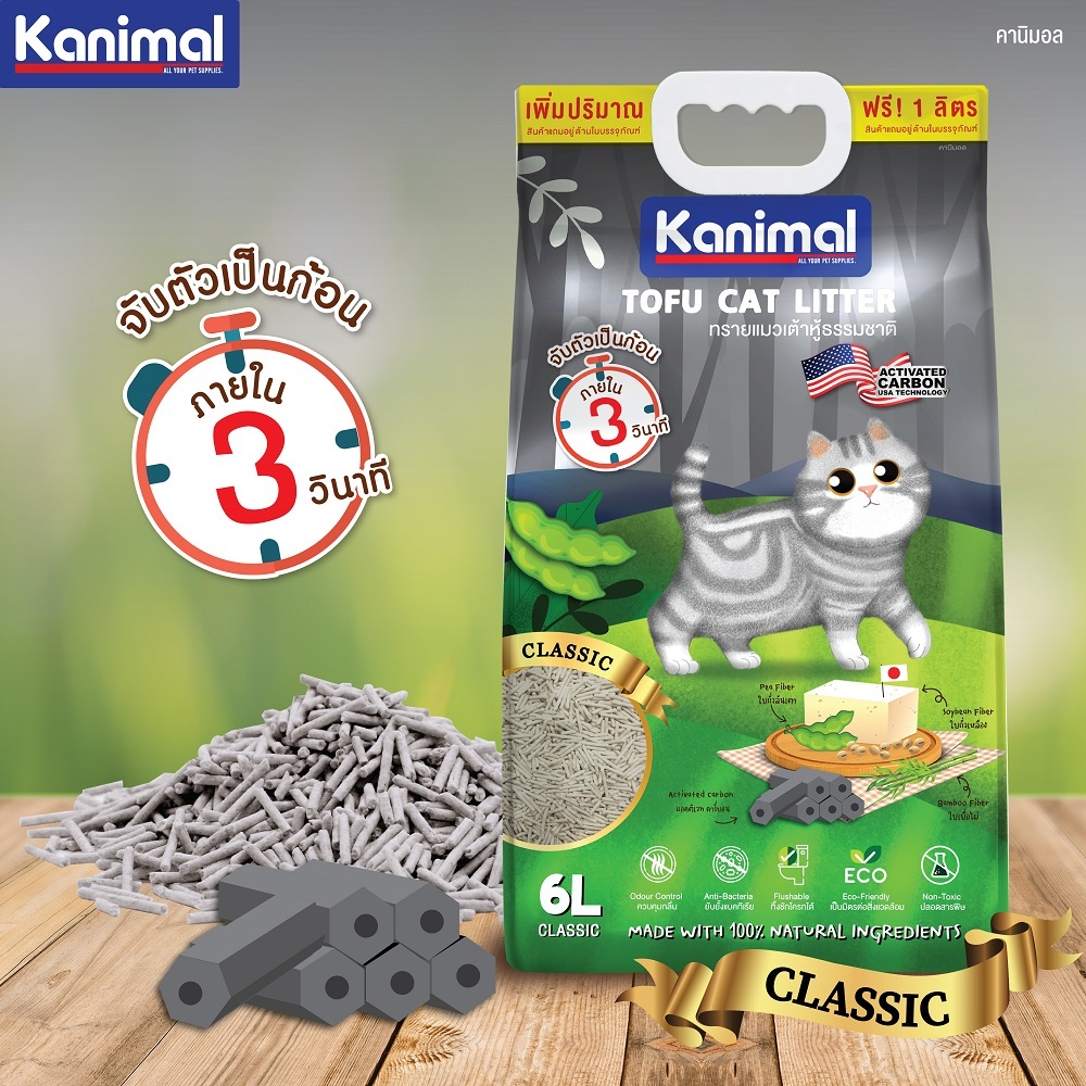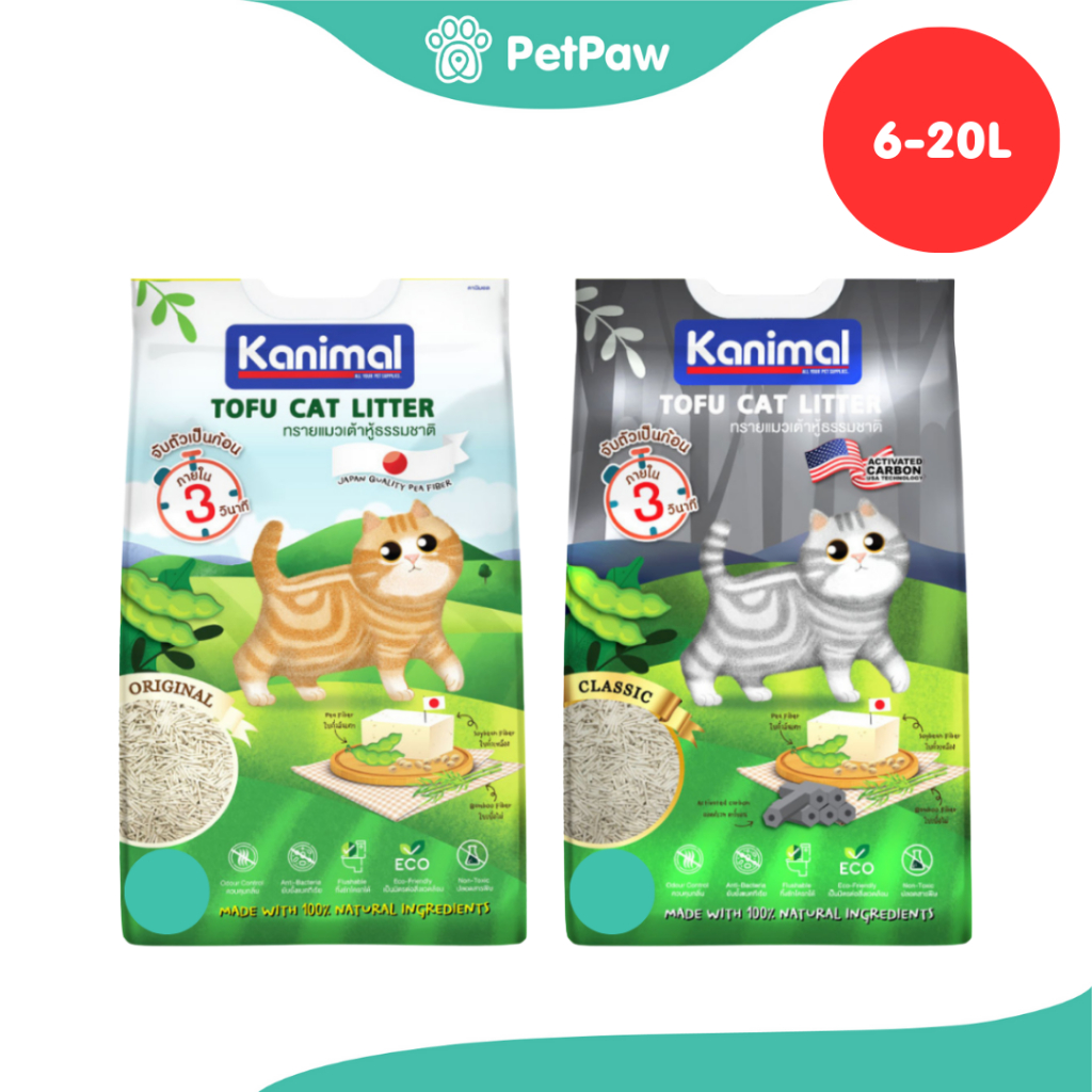 [1 ถุง] Kanimal Tofu Litter ทรายแมวเต้าหู้ สูตรClassic และสูตรOriginal ไร้ฝุ่น ขนาด 6L-20L
