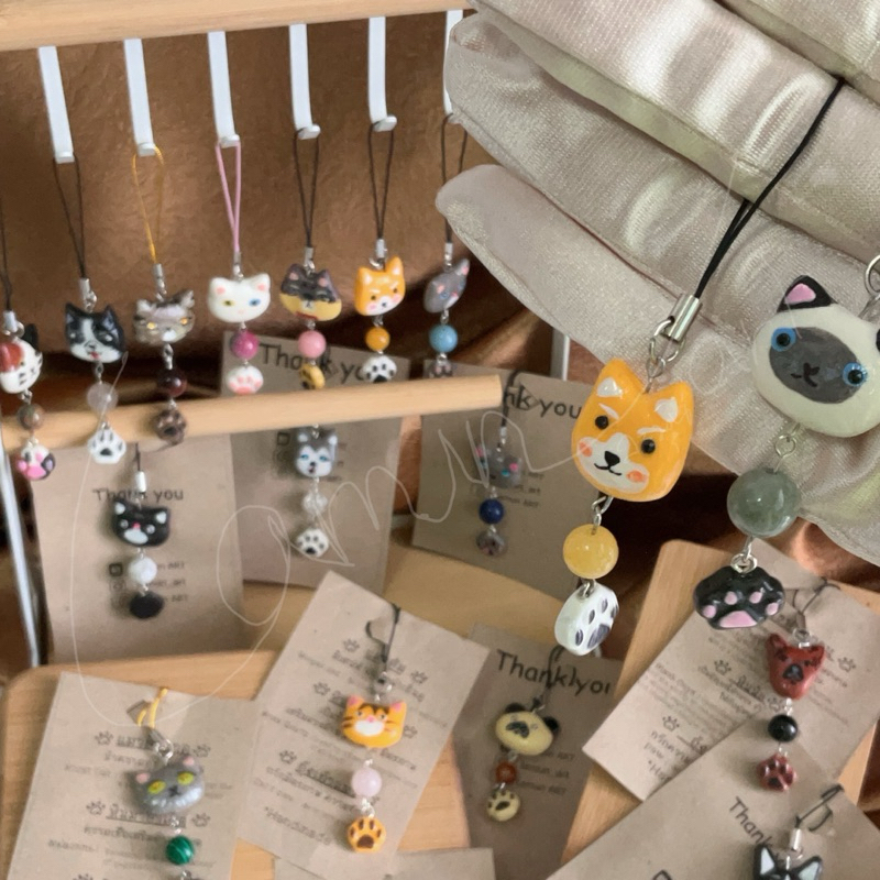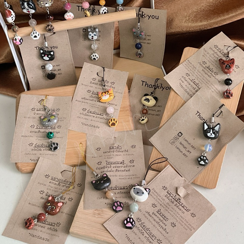 พวงกุญแจ ดีไซน์ แมว สุนัข มงคล + หินมงคล