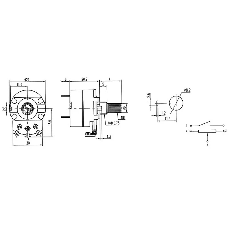 ความต้านทานเต็มรูปแบบ: 5K 10K 20K 22K 50K 100K 250K 500K โอห์ม