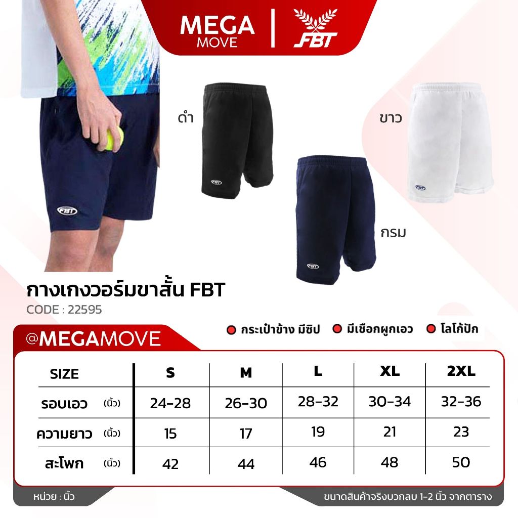 วอร์มขาสั้น FBT เอวยางยืดพร้อมเชือก กระเป๋าข้าง ซ้าย-ขวา 22595