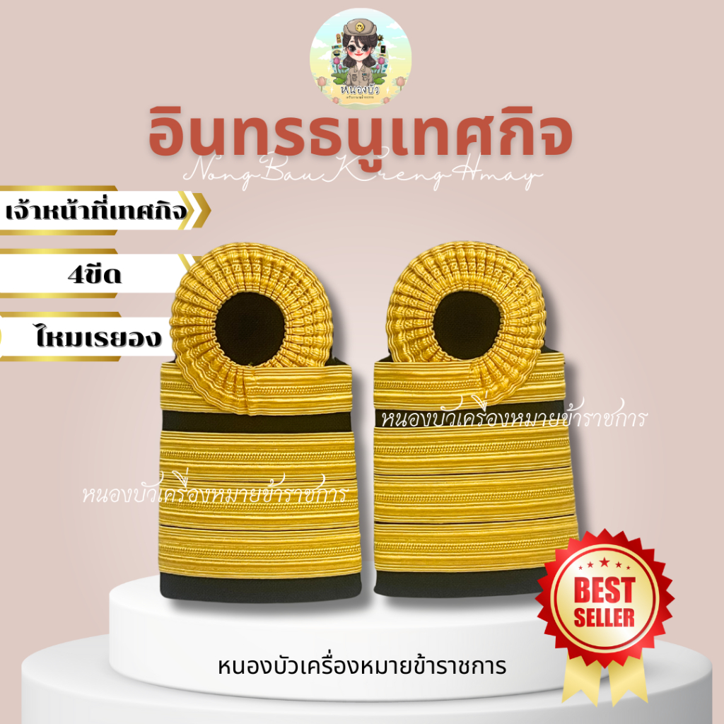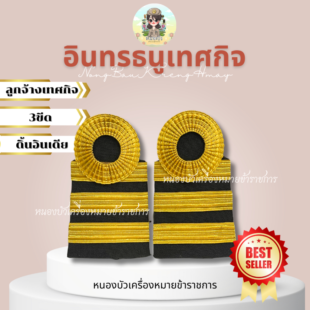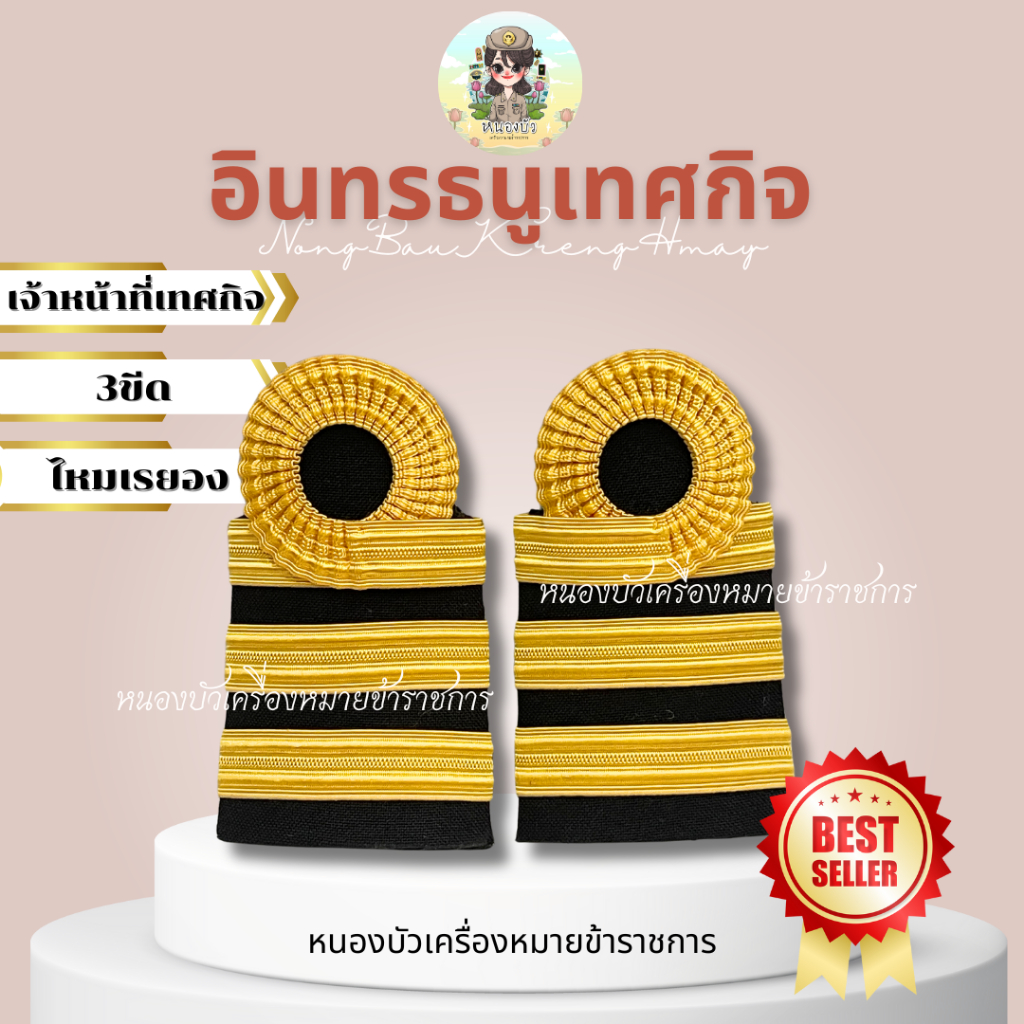 หยิบใส่ตะกร้าบ่าเทศกิจ อินธนูเทศกิจ บ่าเจ้าหน้าที่เทศกิจ เครื่องหมายเทศกิจ บ่าลูกจ้างเทศกิจ พื้นน้ำตาลเทาอมดำ