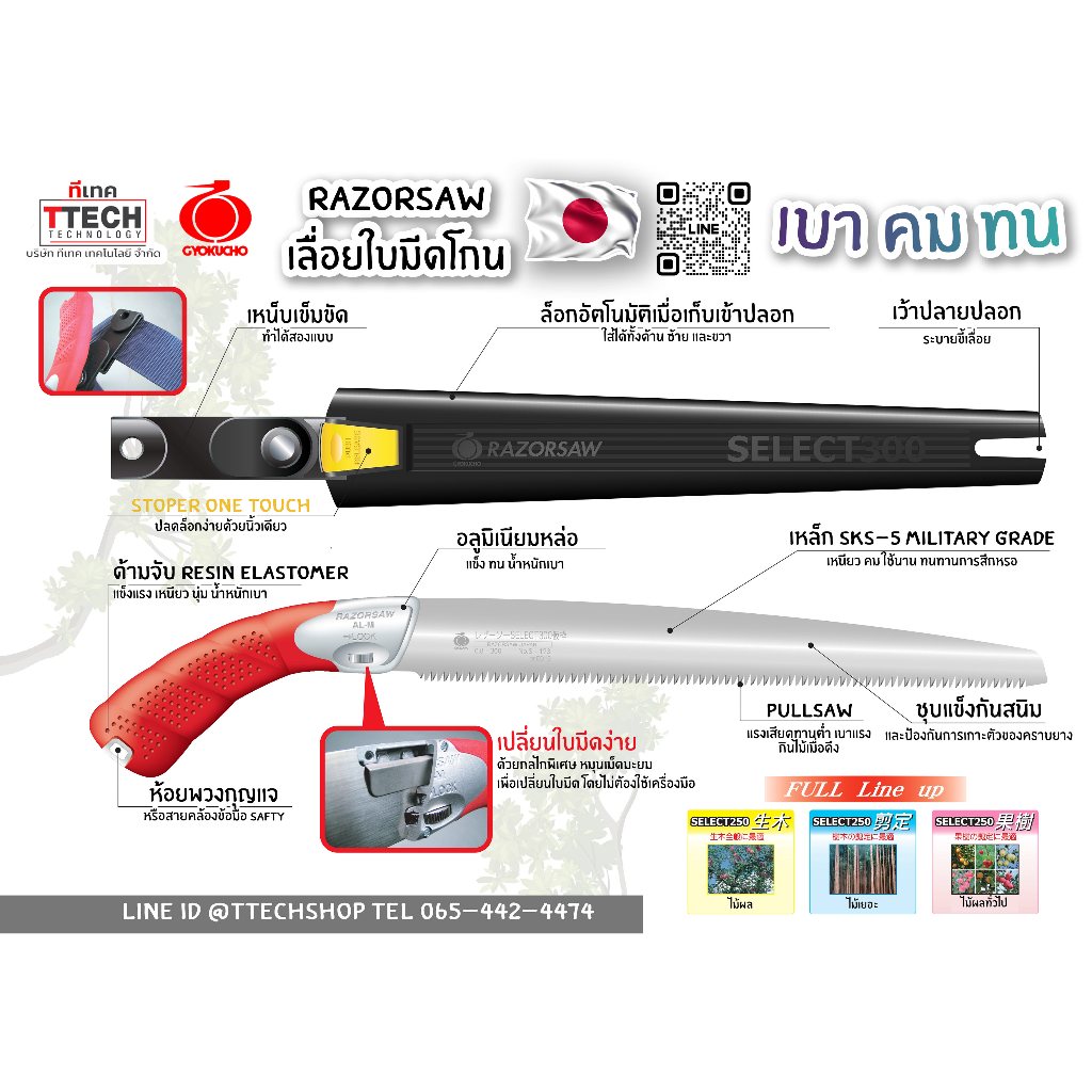 เลื่อย 🔴 Gyokucho Razorsaw แท้ เลื่อยPullsawญี่ปุ่น ตัดไม้สำหรับมืออาชีพ