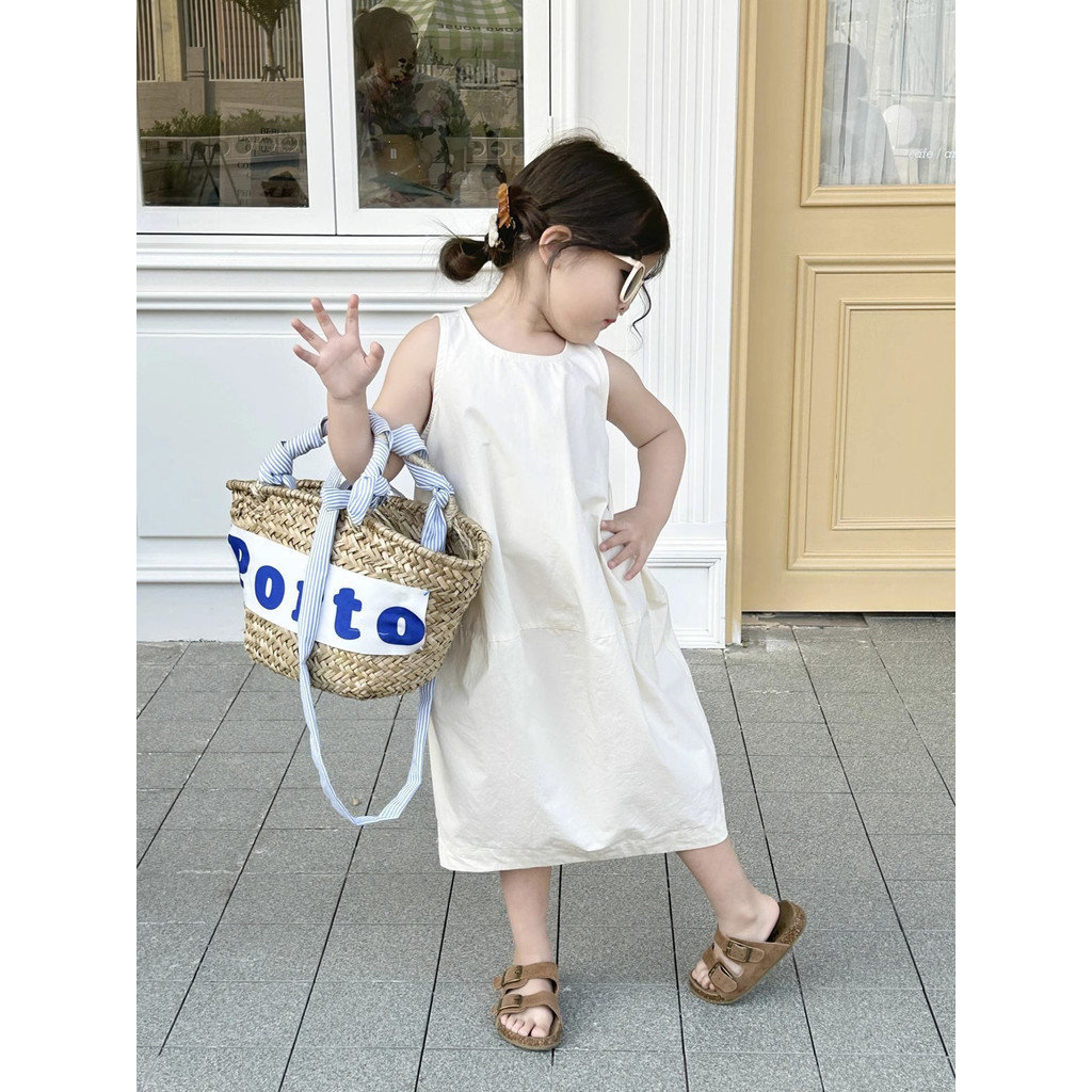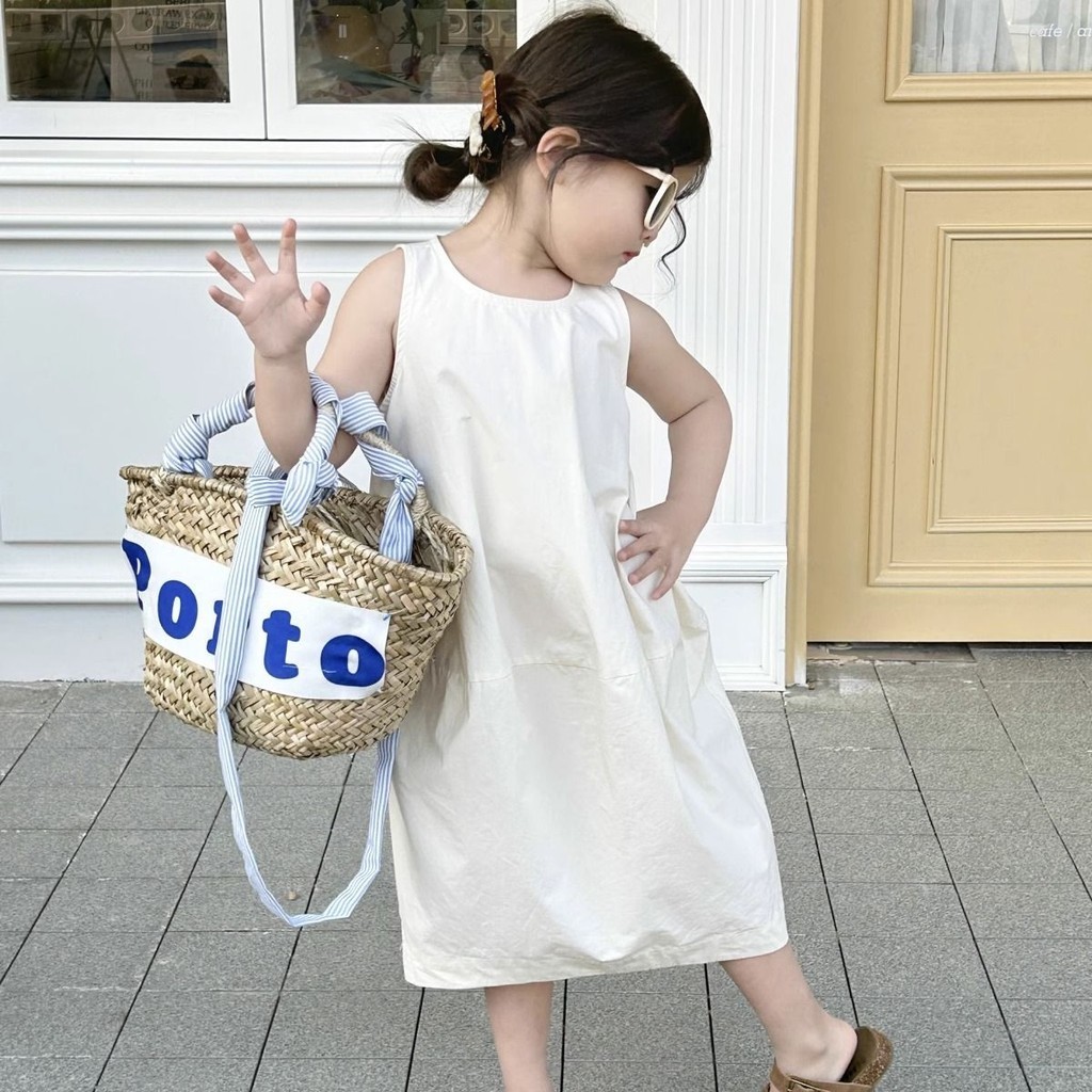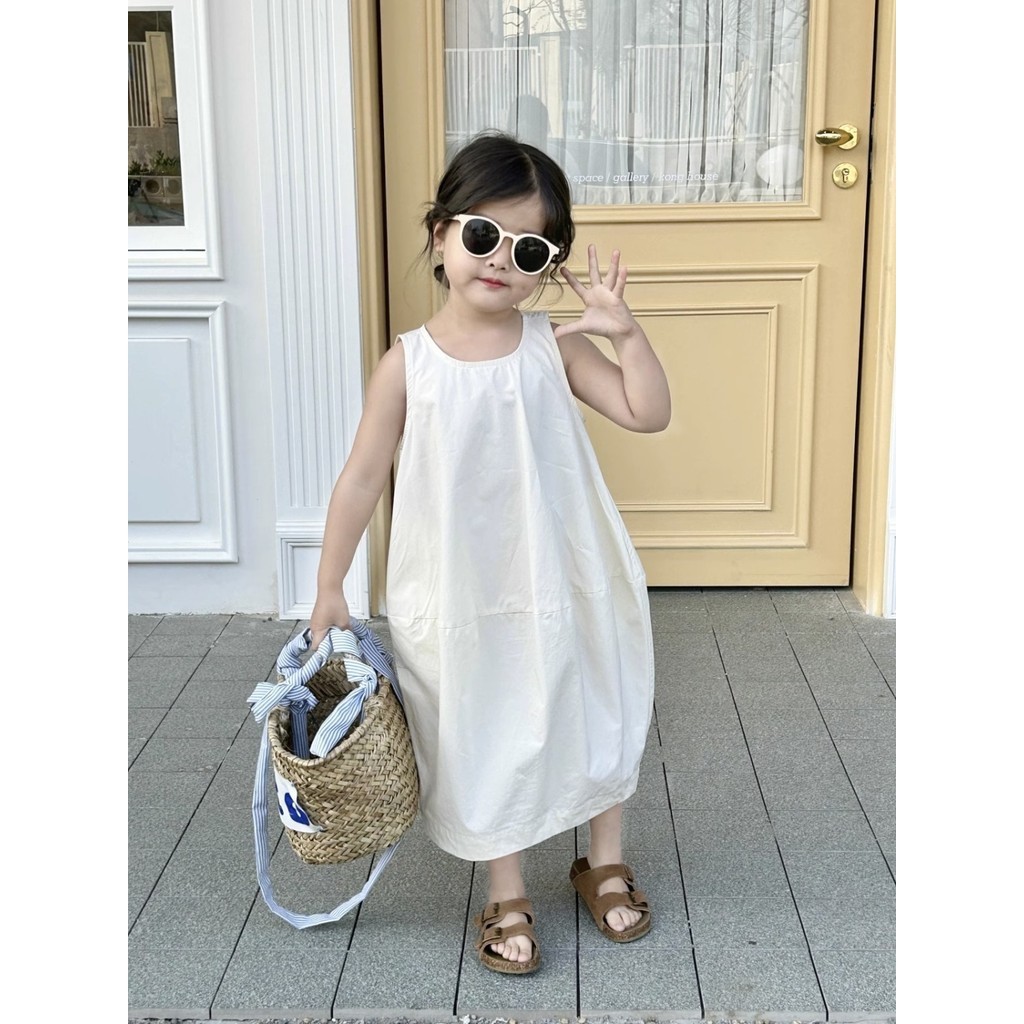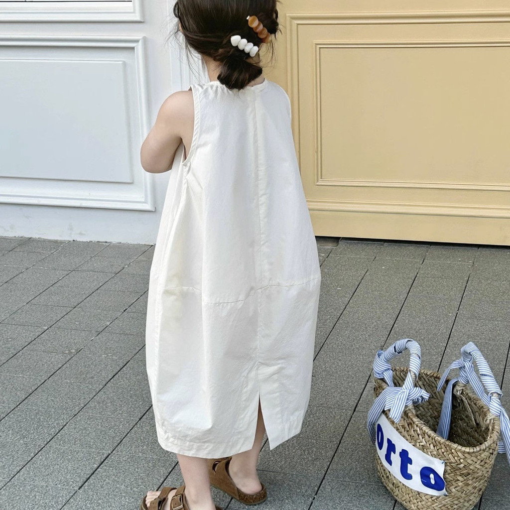 ชุดเดรสแขนกุด สีขาว แฟชั่นฤดูร้อน สําหรับเด็กผู้หญิง