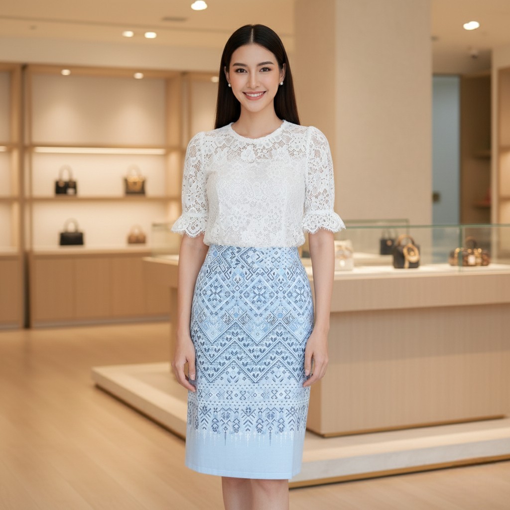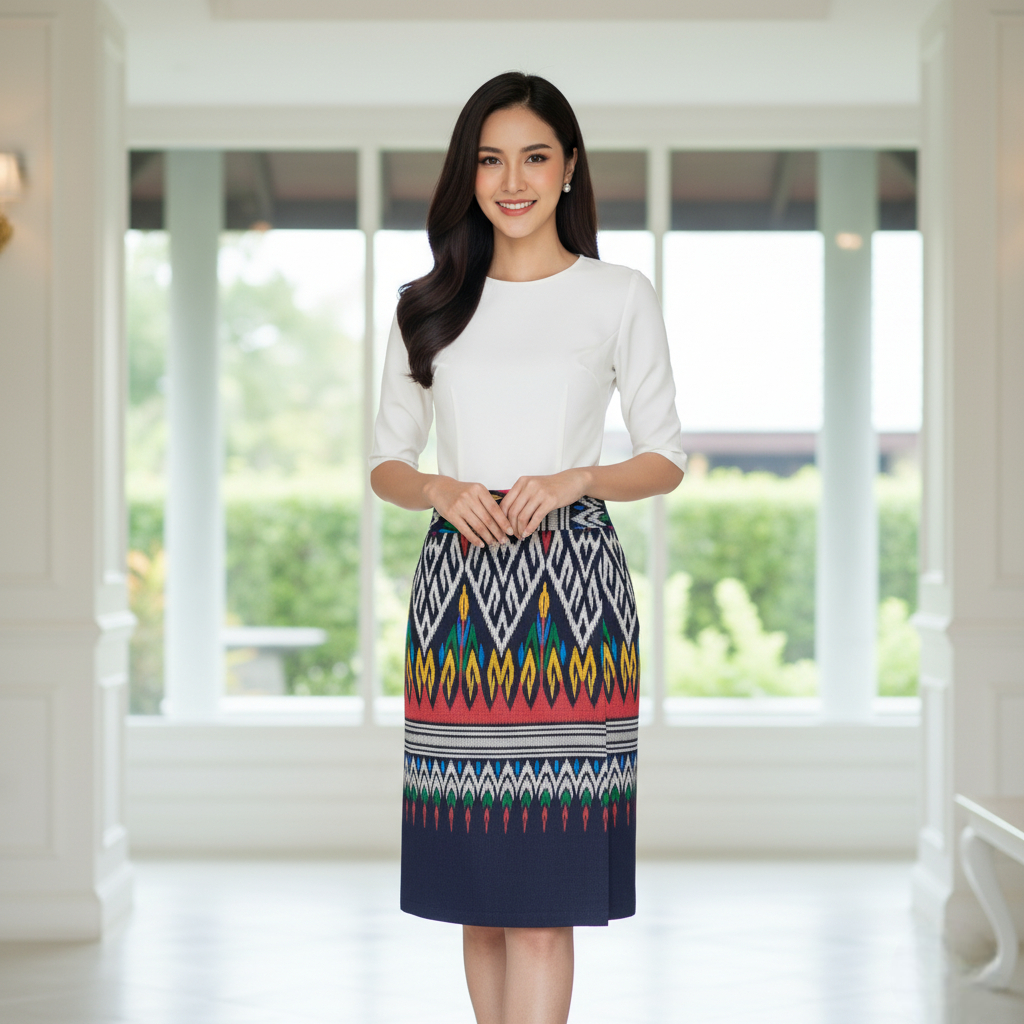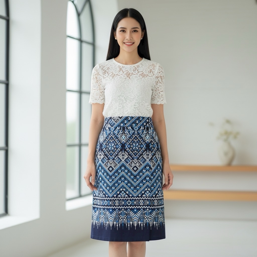กระโปรงผ้าฝ้ายพิมพ์ลาย เอวสม๊อค