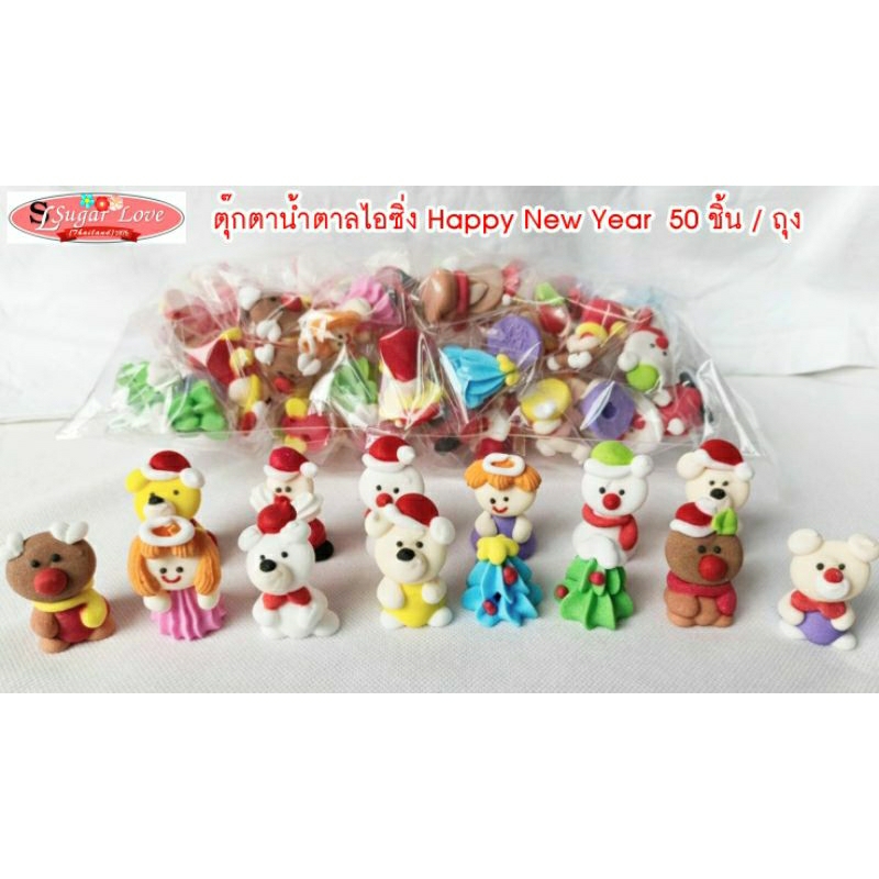 ตุ๊กตาน้ำตาลไอซิ่ง Happy new year 50 ตัว/ถุง ตกแต่งเค้ก คัพเค้ก บิงซู ไอศกรีม รับประทานได้ หอมหวาน น่ารัก สีสันสดใส เก็บในที่แห้งได้นาน