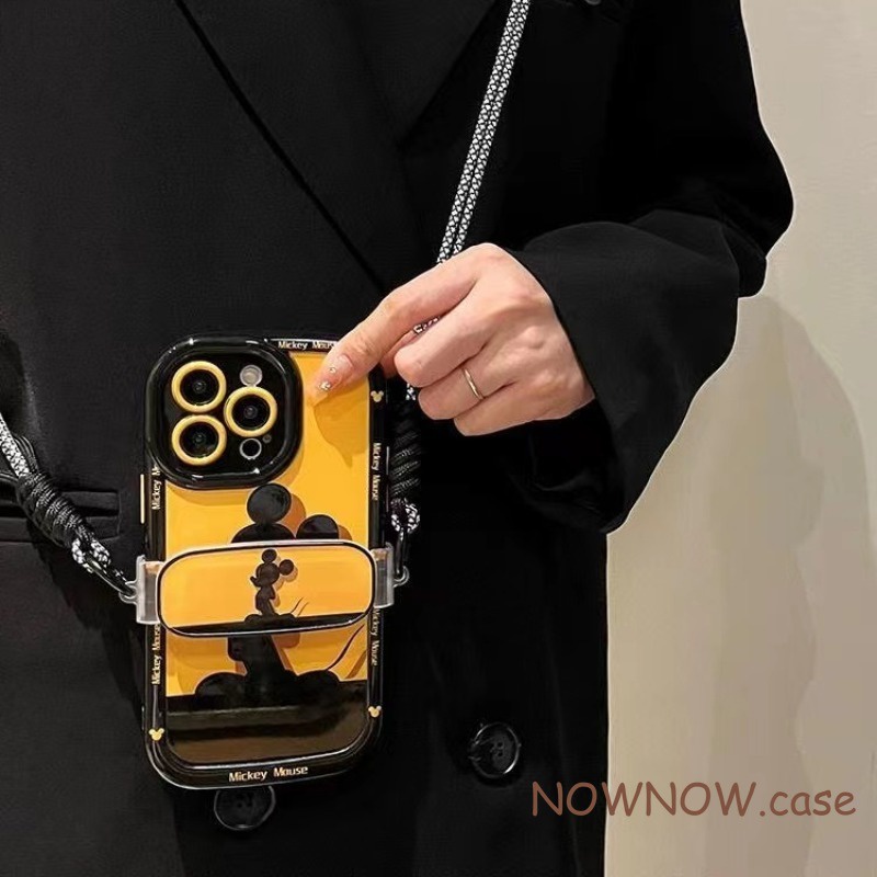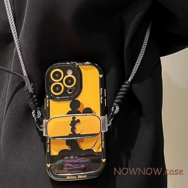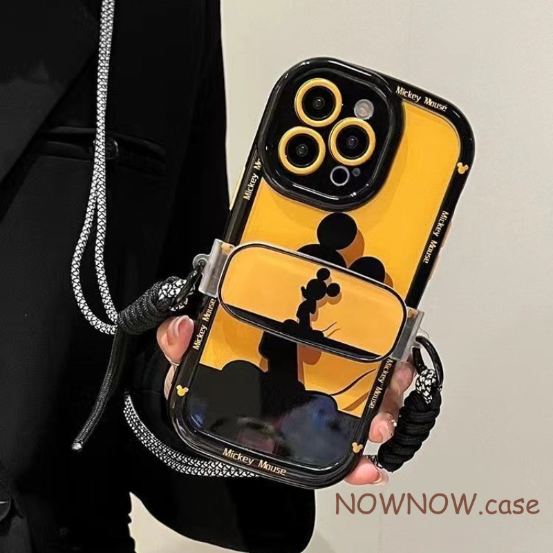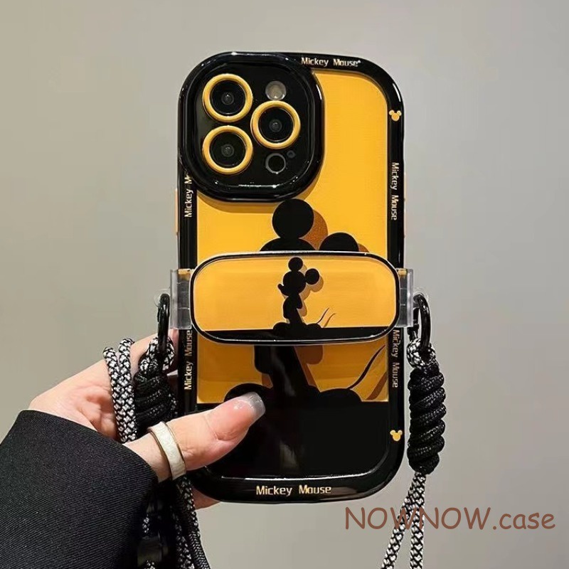 เข้ากันได้สําหรับiphone 15 14 13 12 11 Pro MAX X XS XR XS MAX 6 7 8 Plusการ์ตูนน่ารักMickey Mouseขอบสีดําพัฟเคสโทรศัพท์พร้อมคลิปด้านหลังสายกระเป๋าถือปกอ่อน