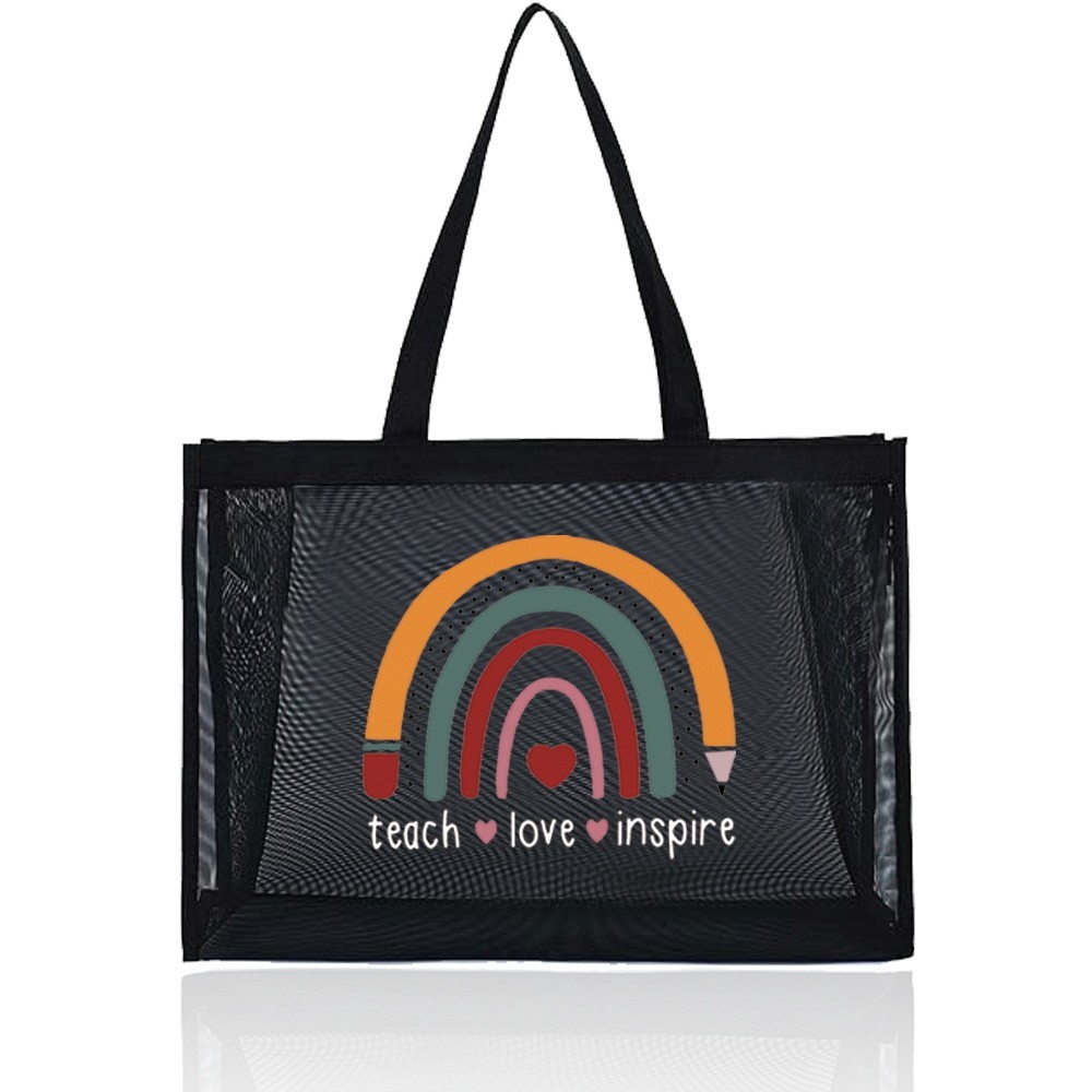 กระเป๋าโท้ท ผู้หญิง กระเป๋าสตางค์ กระเป๋าเก็บของ กระเป๋าถือ โปร่งใส Mesh Shopping Bag Teacher Printing Series