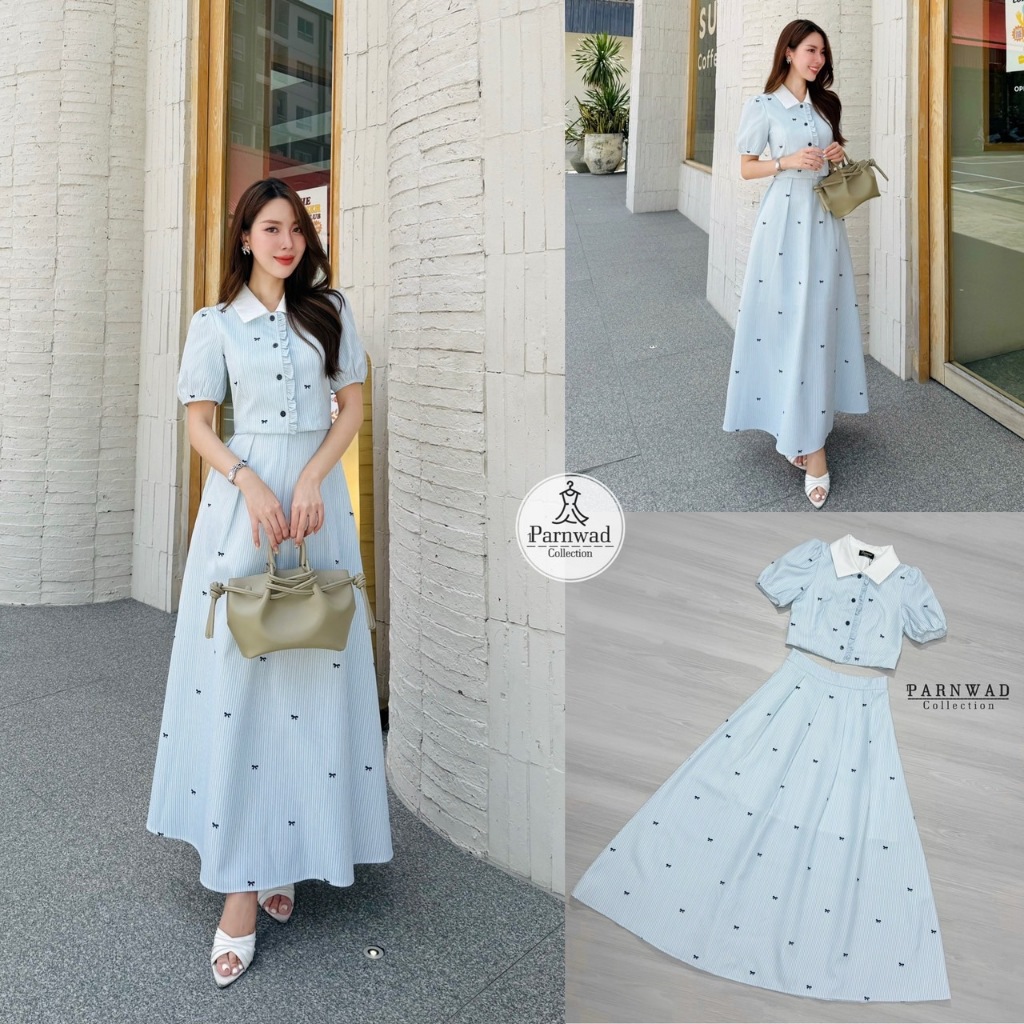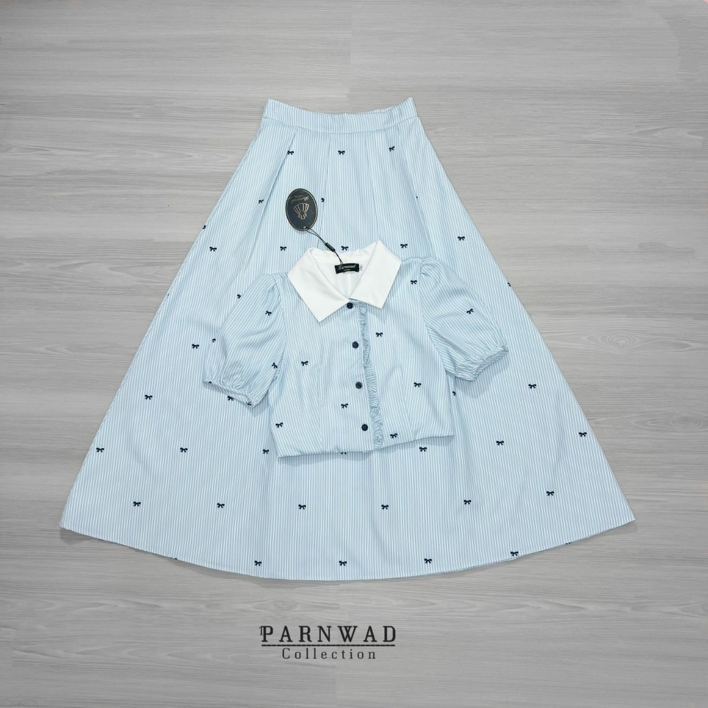 Detail :: ใส่ได้บ่อยๆเลยน๊าชุดนี้ Set เสื้อคอปกแขนตุ๊กตา กระดุมหน้า สกรีนลายโบว์ มาพร้อมกับกระโปรงตัวยาวเอวสูงจับจีบเล็กน้อย ซับในนิ่ม รุ่นนี้ห้ามพลาดเลยนะคะ สวยสุดๆค่าา #parnwadcoll