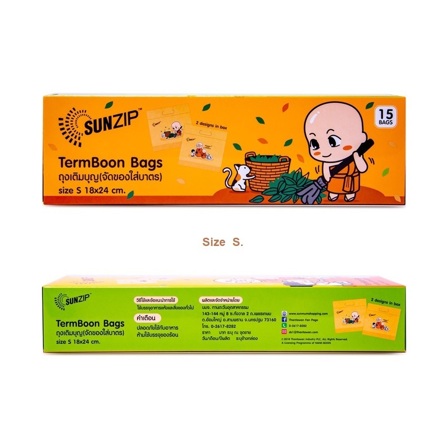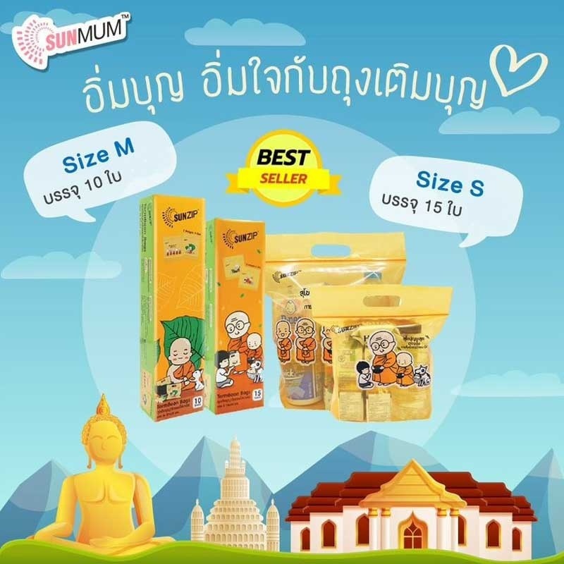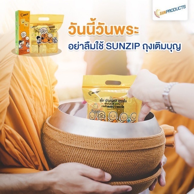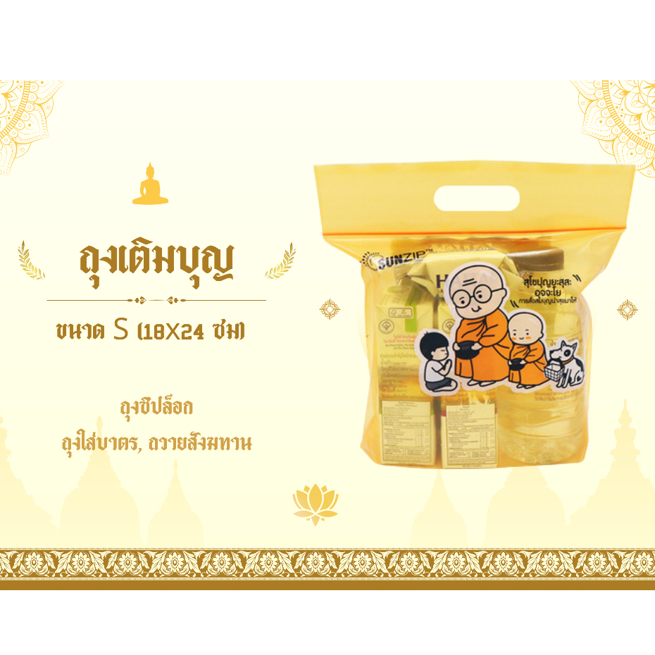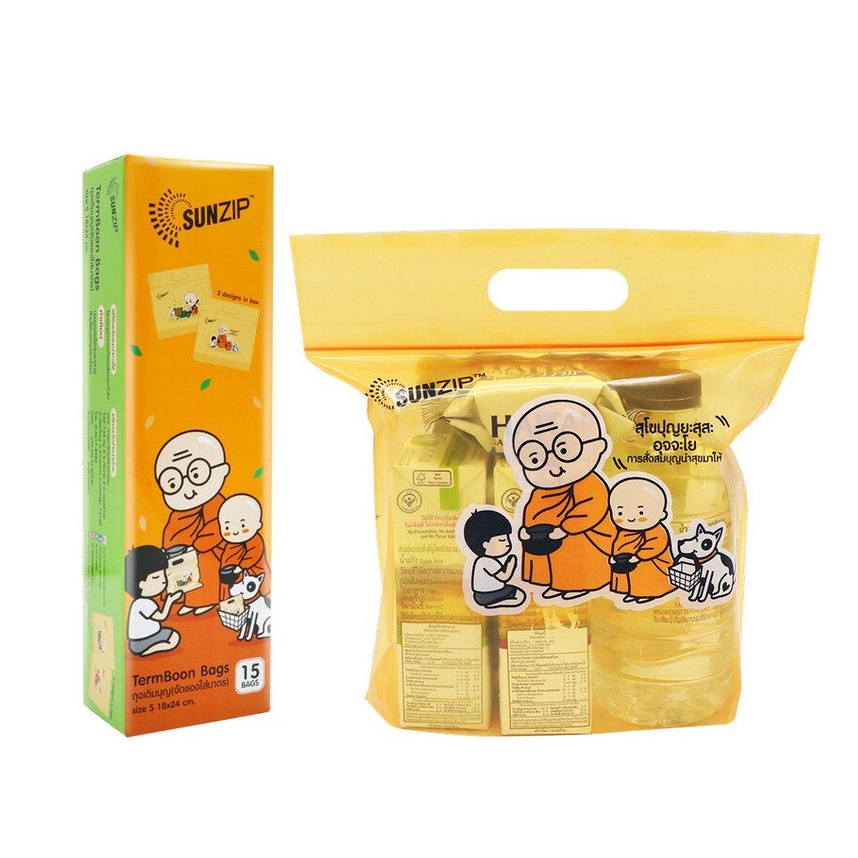 SUNZIP ถุงเติมบุญ (จัดของใส่บาตรพระ) Size S ขนาด 18×24 cm. (บรรจุ 15 ใบ/กล่อง)