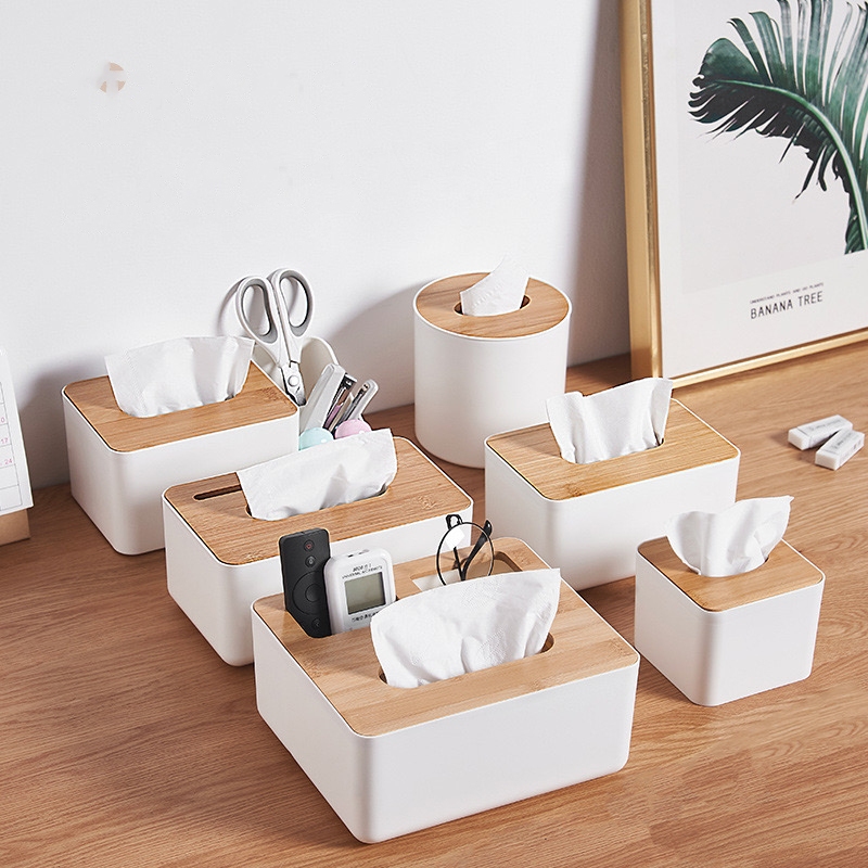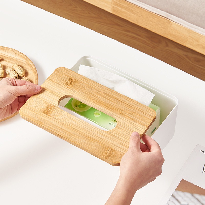 bobo กล่องใส่กระดาษทิชชู่ แบบฝาไม้ มินิมอล กล่องทิชชู่ มีฝาปิด มีหลายรูปแบบ น้ำหนักเบา สามารถถอดฝาได้