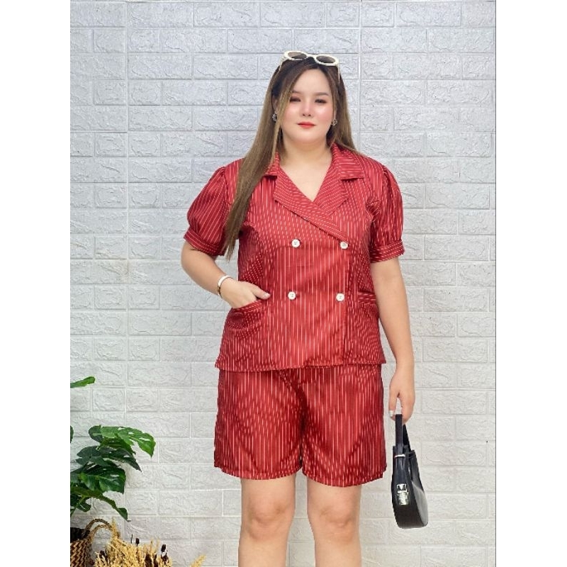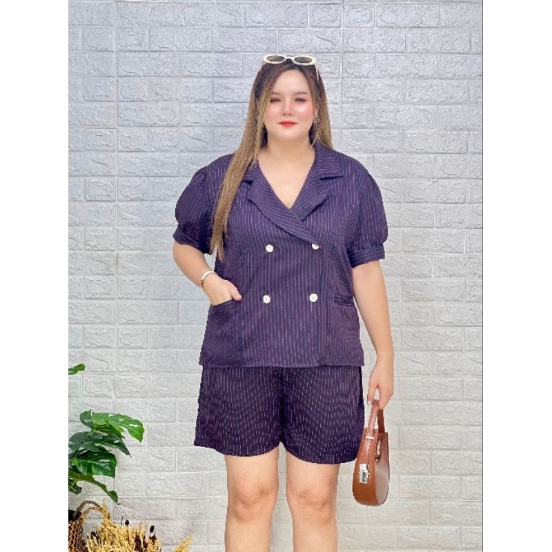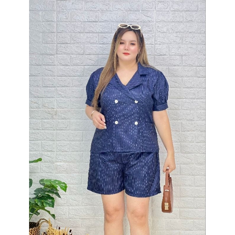 ชุดเซตสาวอวบอ้วน,สาวพลัสไซส์,ชุดเซต2ชิ้นไซส์ใหญ่ ตัดเย็บด้วยเนื้อผ้าโอซาก้าพิมพ์ลายไม่บางหรือหนาจนเกินไป เนื้อผ้ามี ลักษณะเฉพาะตัวอยู่ทรง รีดง่ายยับยาก ตัวเสื้อดีไซน์สวยหรูกระดุมหน้าใช้งานได้จริงทุกเม็ดจะใส่ออกงานใส่ทำงานดูหรูหรามาพร้อมกางเกงขาสั้นเข้าชุด