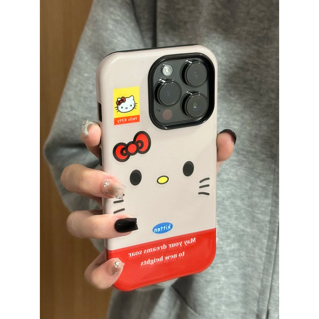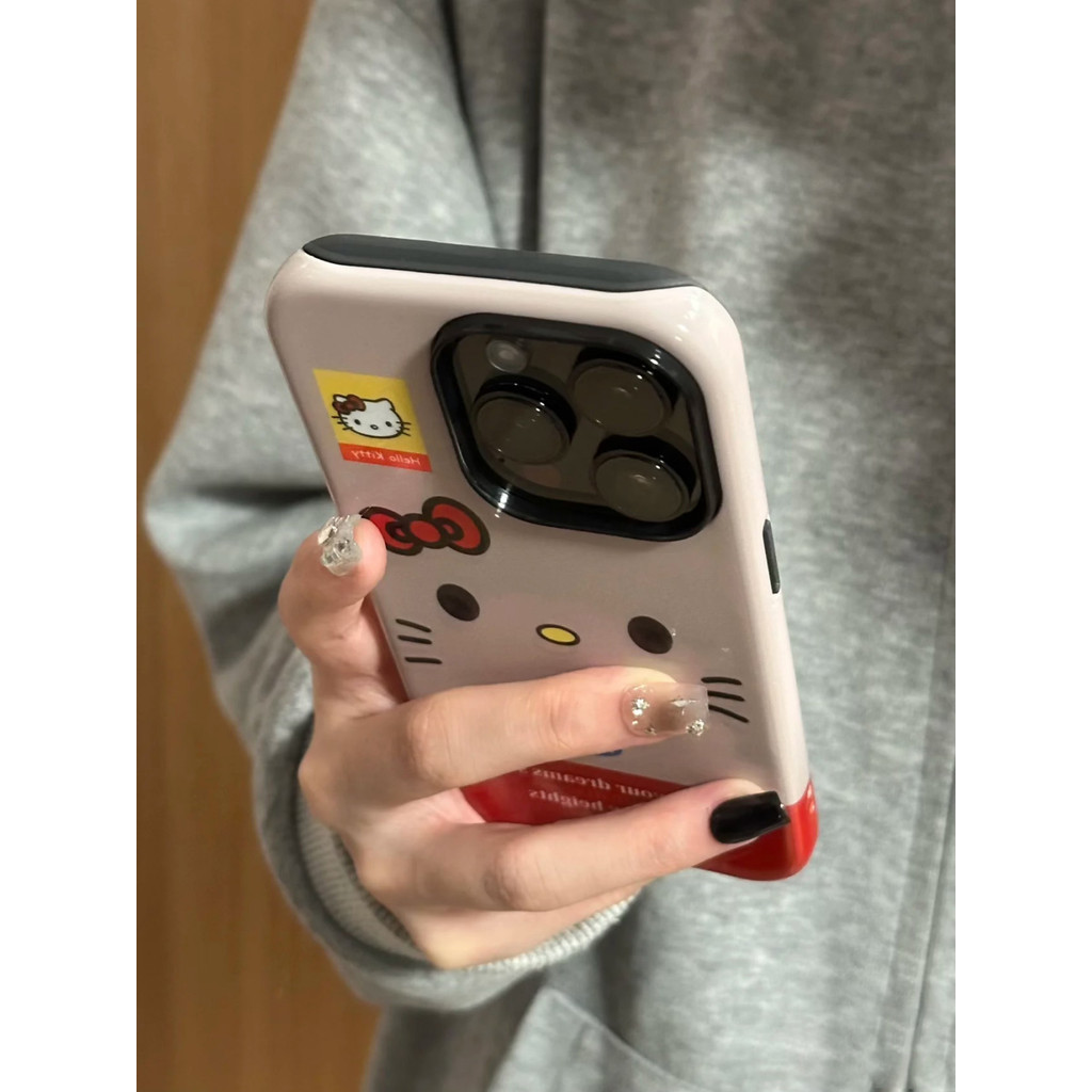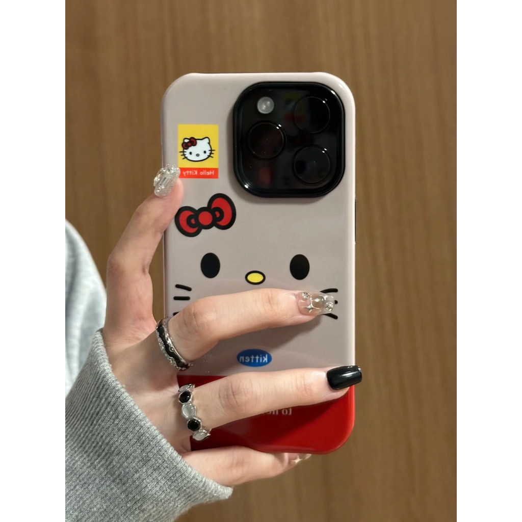หยิบใส่ตะกร้าเคส Hello Kitty 2-in-1 สีแดงสําหรับ Apple 16 Pro Max iPhone 15 Dual Layer 14 Pro Film 13/12/11 Pro Max 7/8p Xs Max ฝาครอบป้องกันกันกระแทก