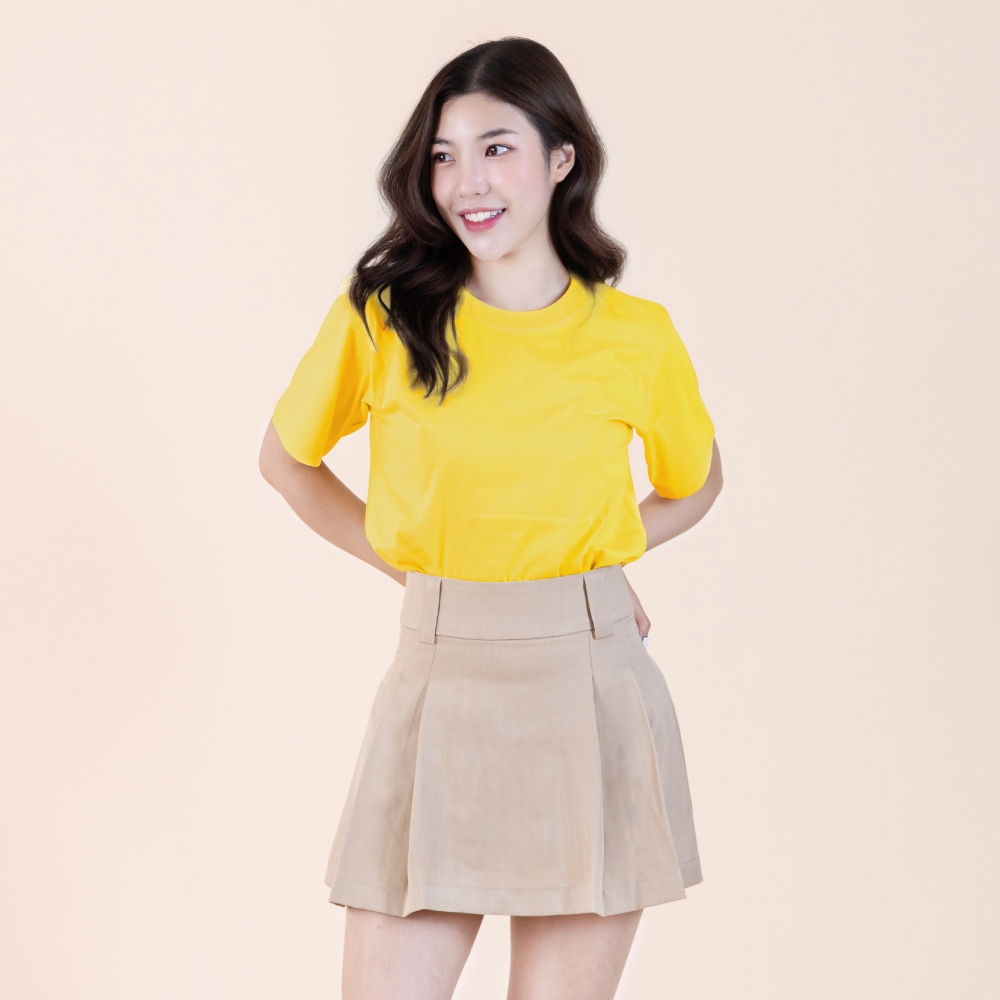 เสื้อยืดสีเหลือง TFact ถูก ผ้านิ่มใส่สบาย คอกลม แขนสั้น สีสดหลายสี สีไม่ซีด สีไม่ตก Cotton 100% UNISEX รหัส TF-003