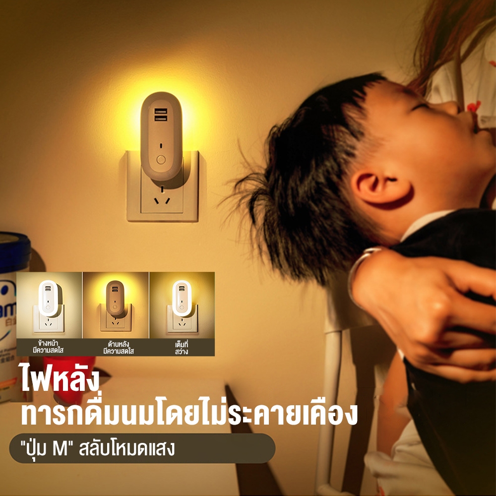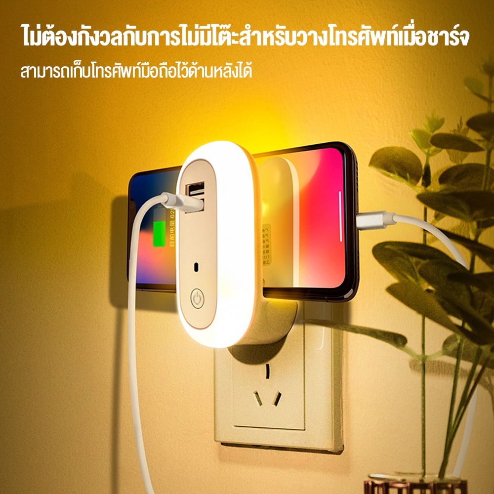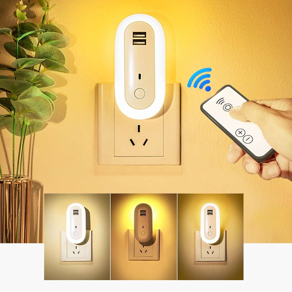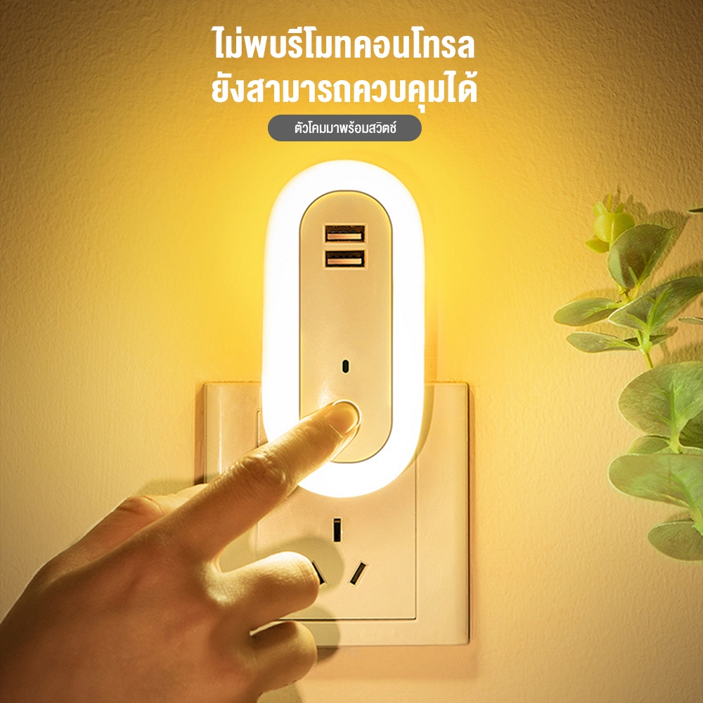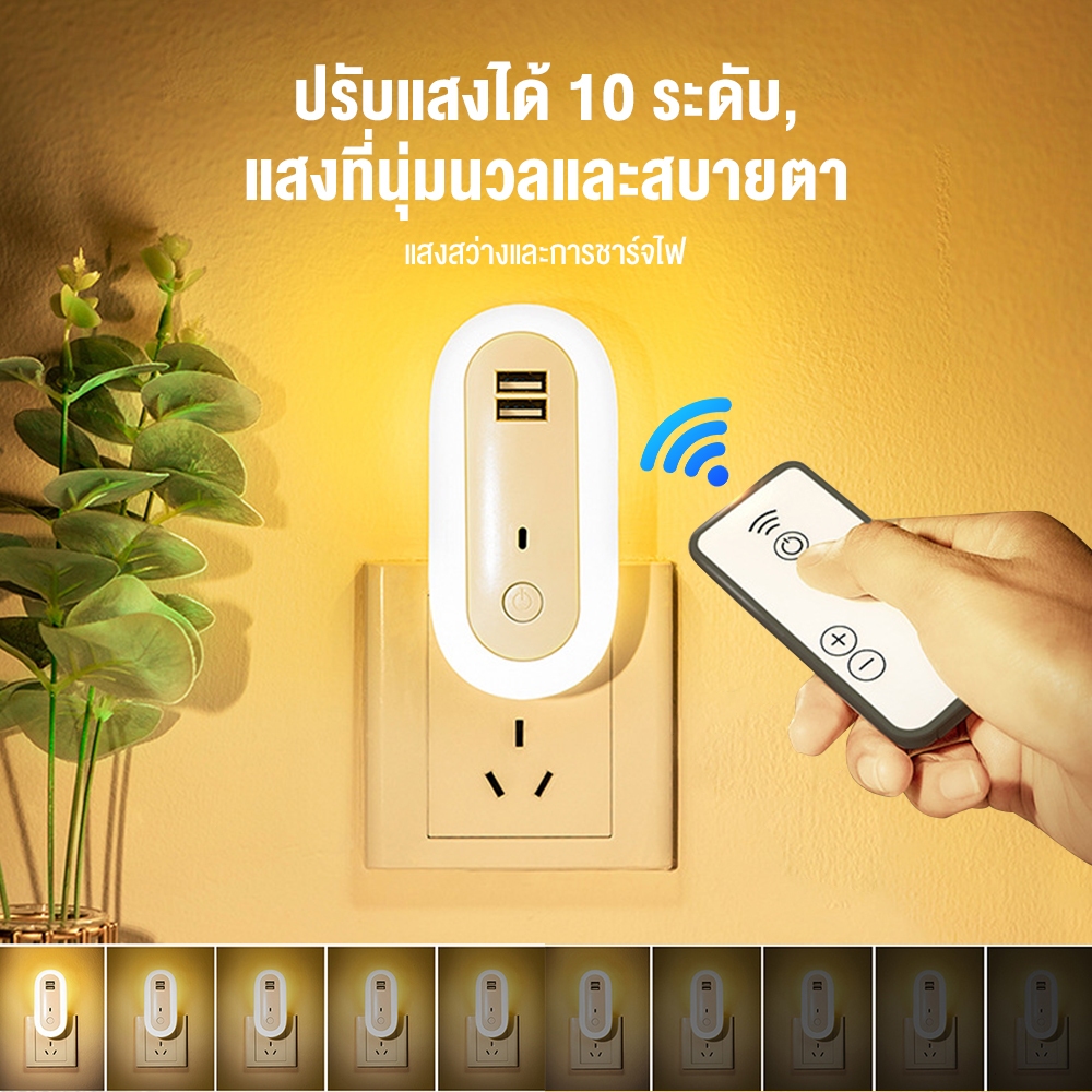 Zuuko ไฟติดห้องนอนพร้อมรีโมท หรี่แสงได้ LED ปรับแสงได้ 10 ความสว่าง โคมไฟติดผนัง ด้วยซ็อกเก็ต USB