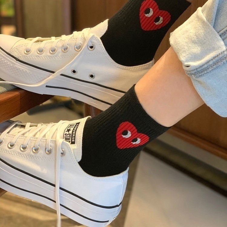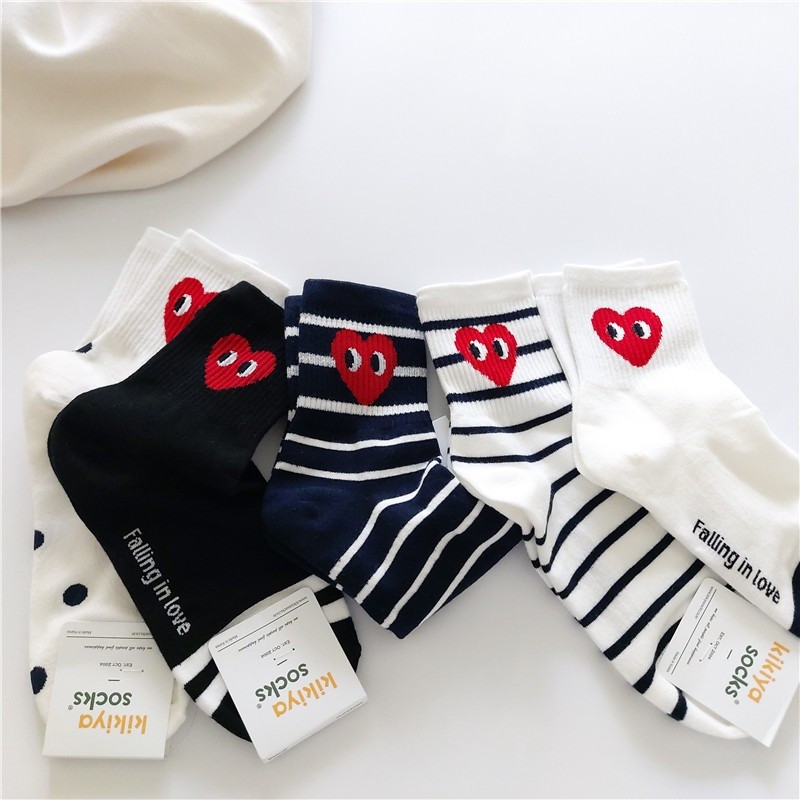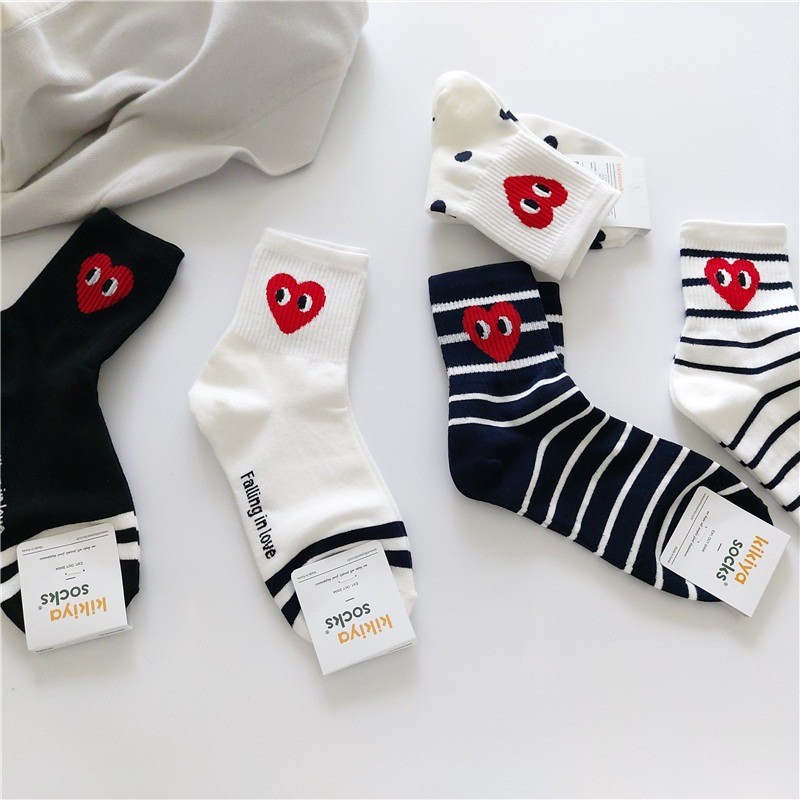ถุงเท้าเรือผู้หญิง สีแดง รัก ดวงตา ถุงเท้าข้อสั้นกีฬาวิทยาลัยสีทึบถุงเท้าสั้นถุงเท้าที่มองไม่เห็นถุงเท้ากลางน่อง