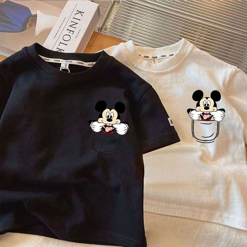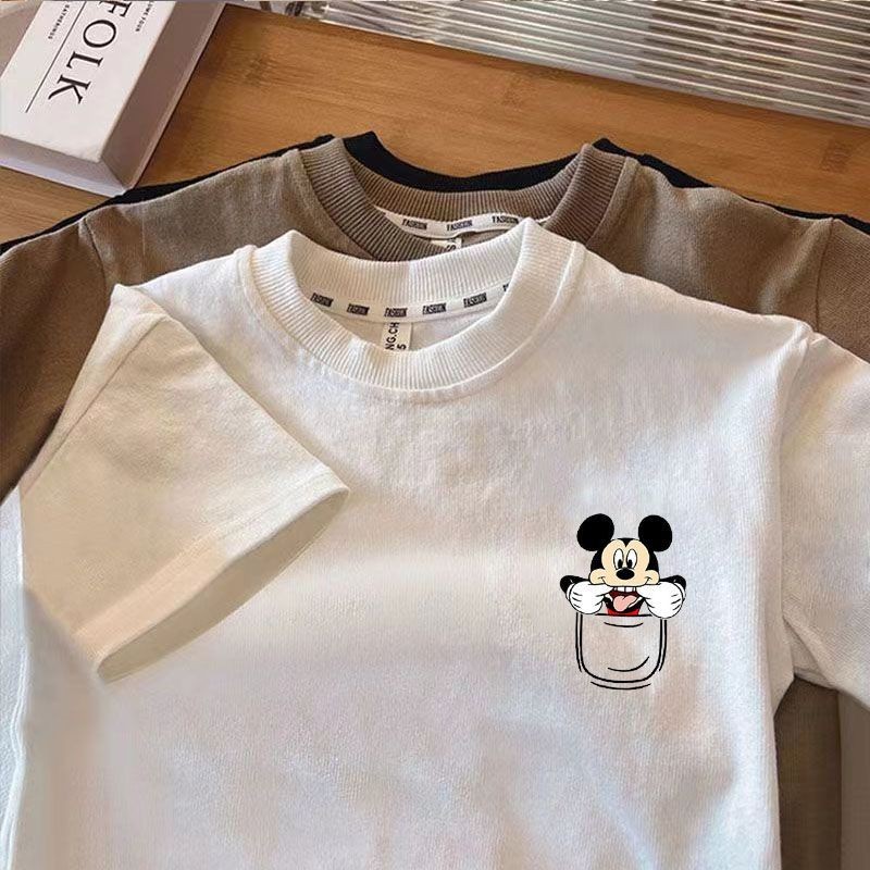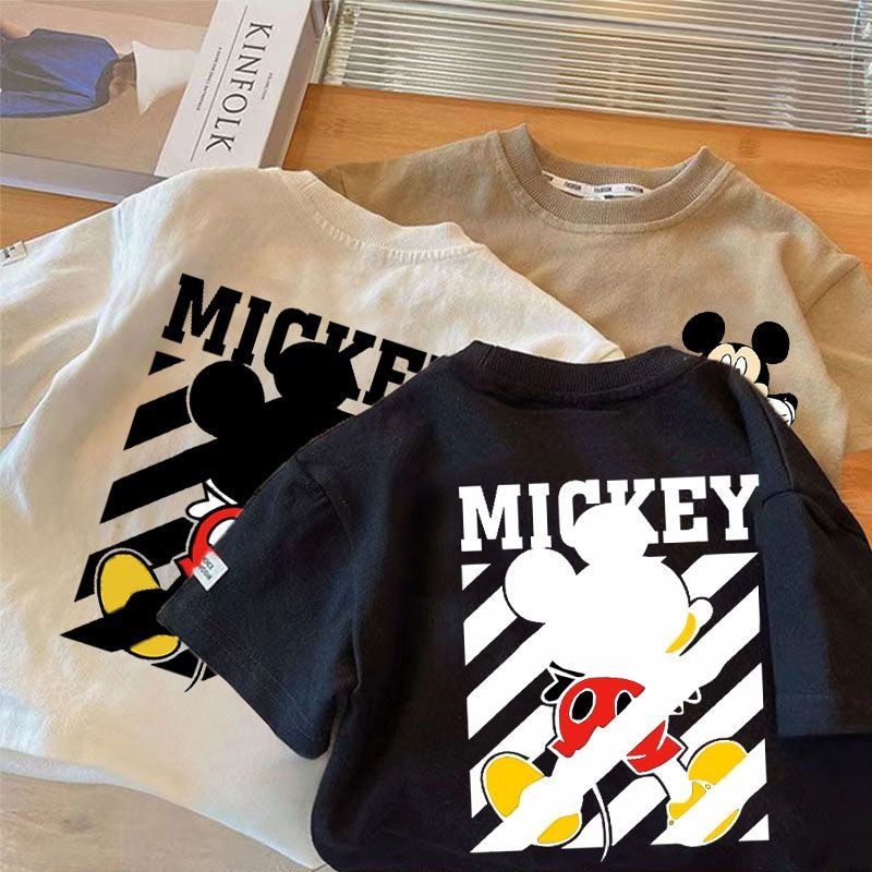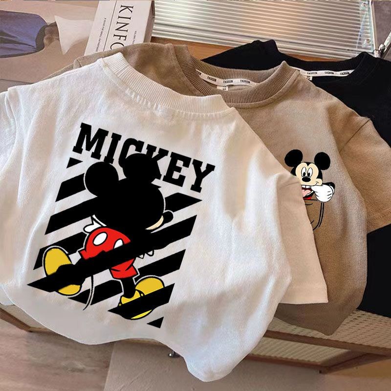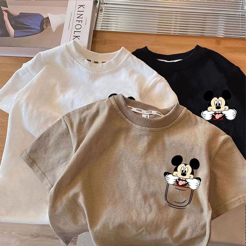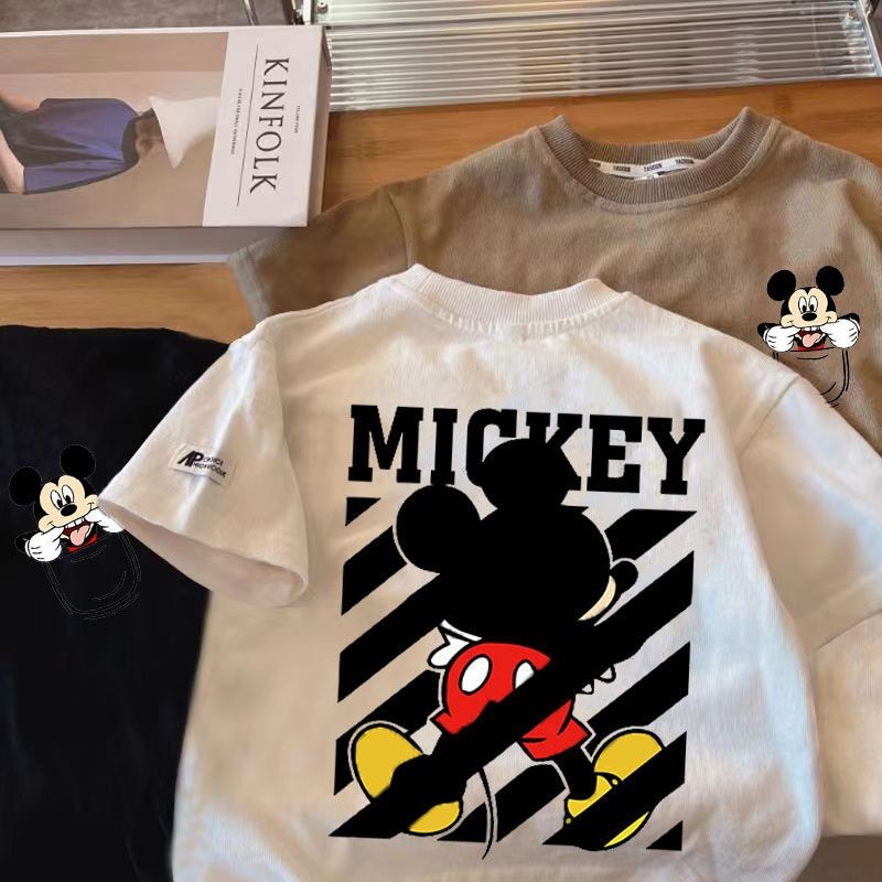 เสื้อยืดแขนสั้นเด็กชายฤดูร้อนสไตล์ใหม่เวอร์ชั่นเกาหลีผ้าฝ้ายแท้แฟชั่นการ์ตูนมิกกี้พิมพ์หลวมสบายๆนุ่มสบายทุกการแข่งขัน