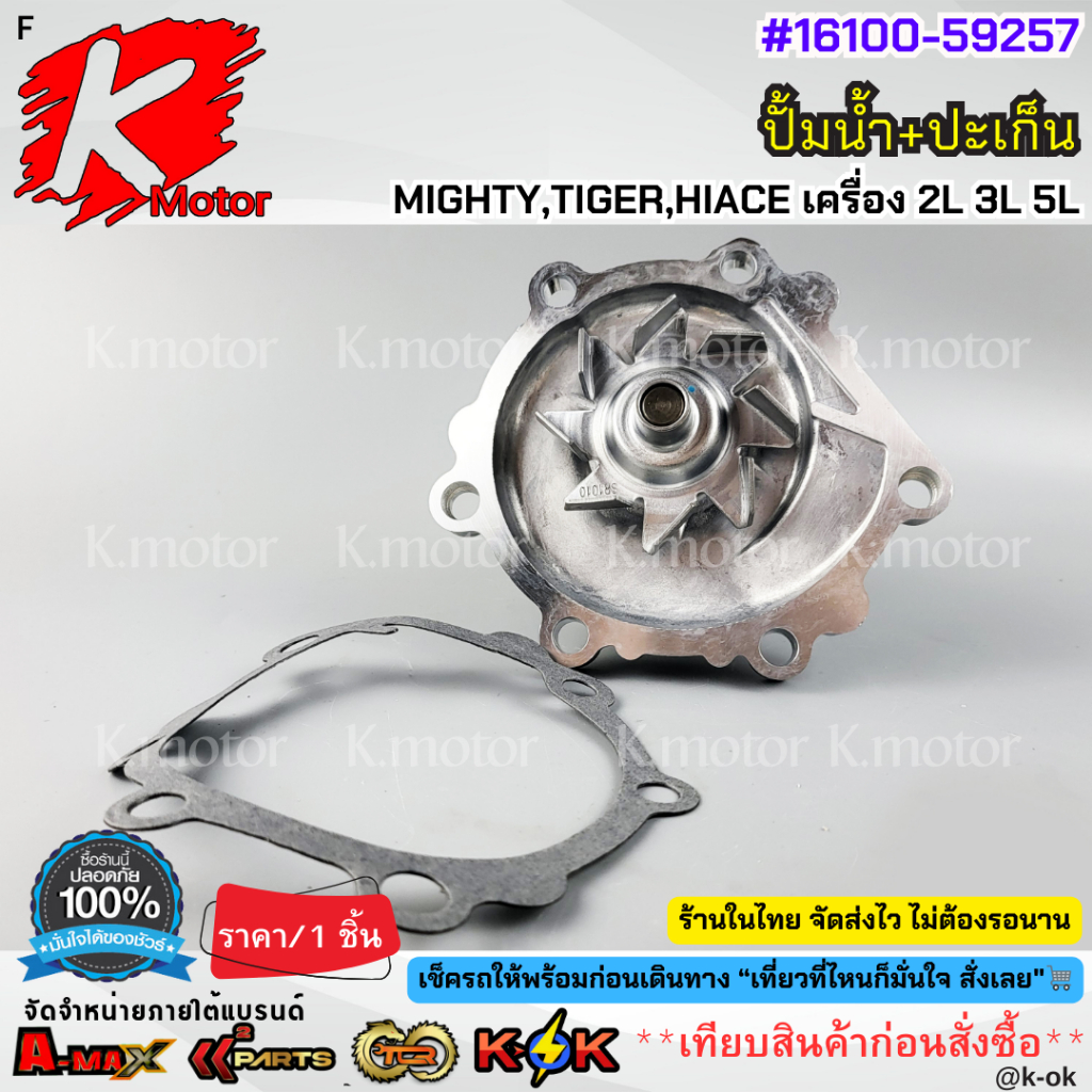 ปั้มน้ำ+ปะเก็น MIGHTY,TIGER,HIACE เครื่อง 2L 3L 5L#16100-59257
