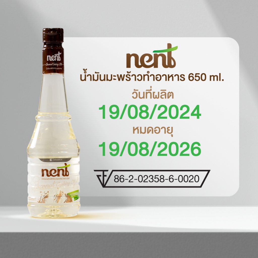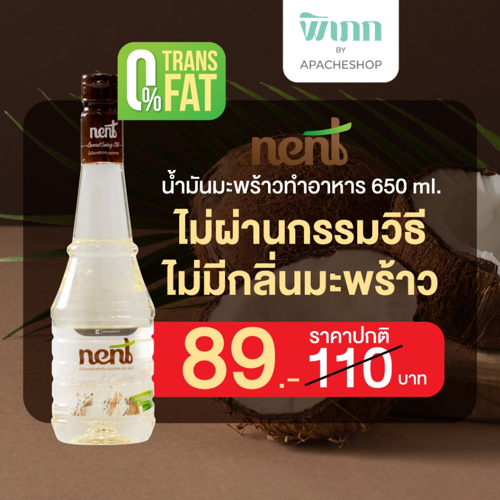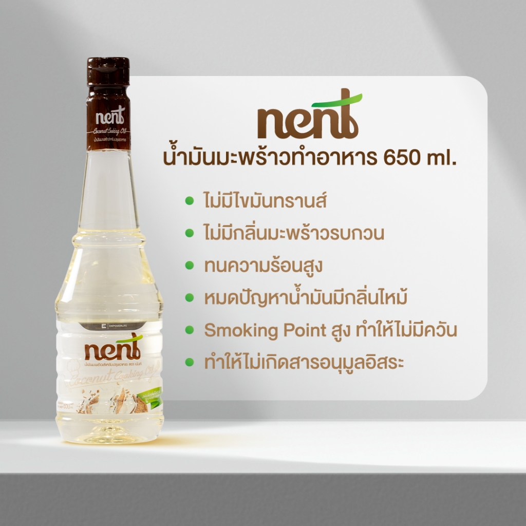 Nent น้ำมันมะพร้าวสำหรับทำอาหาร ไม่ผ่านกรรมวิธี ไม่ผ่านกระบวนการ RBD Organic 100% ไร้สารเคมี ปลอดภัย อย.86-2-02358-6-0020 ไม่มีกลิ่นหืน ไม่มีกลิ่นมะพร้าวรบกวน ทำไม่เสียอรรถรสในการรับประทานอาหาร